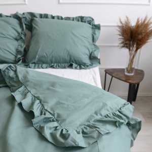 Cotton bedding with a frill made of the highest quality cotton material with the oeko-tex 1000 certificate. The bedding has a sewn frill on each side in both pillowcases (pillow and quilt). The bedding is closed with strings. In addition, it has a strip sewn inside, thanks to which it will be easy to hide the bedding and it will not protrude during use.
