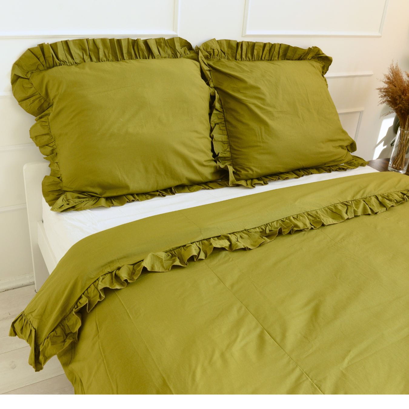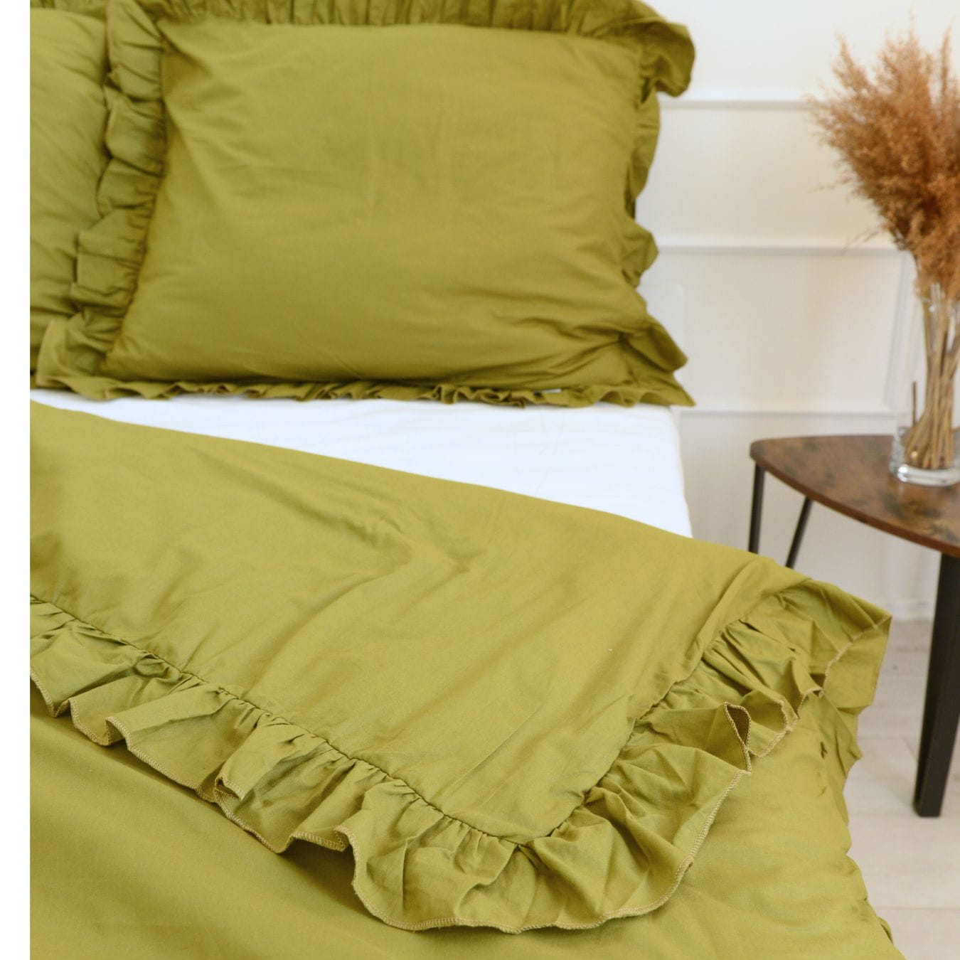 Cotton bedlinen with frill boho green 200/220 (1)