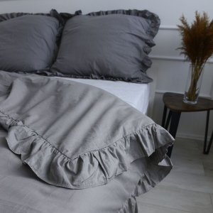 Cotton bedlinen with frill dark grey 140/200
