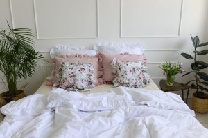 Cotton bedding with a frill made of the highest quality cotton material with the oeko-tex 1000 certificate. The bedding has a sewn frill on each side in both pillowcases (pillow and quilt). The bedding is closed with strings. In addition, it has a strip sewn inside, thanks to which it will be easy to hide the bedding and it will not protrude during use.