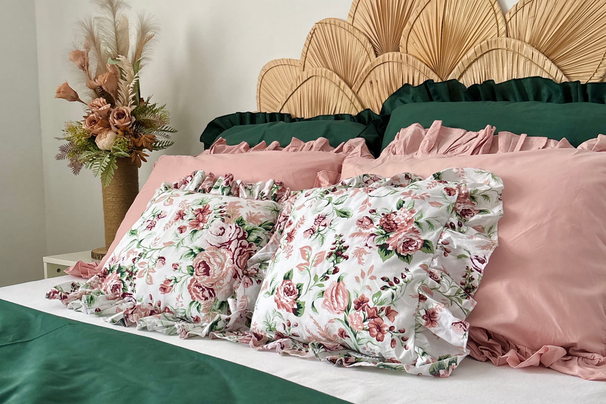 Cotton bedding with a frill made of the highest quality cotton material with the oeko-tex 1000 certificate. The bedding has a sewn frill on each side in both pillowcases (pillow and quilt). The bedding is closed with strings. In addition, it has a strip sewn inside, thanks to which it will be easy to hide the bedding and it will not protrude during use.
