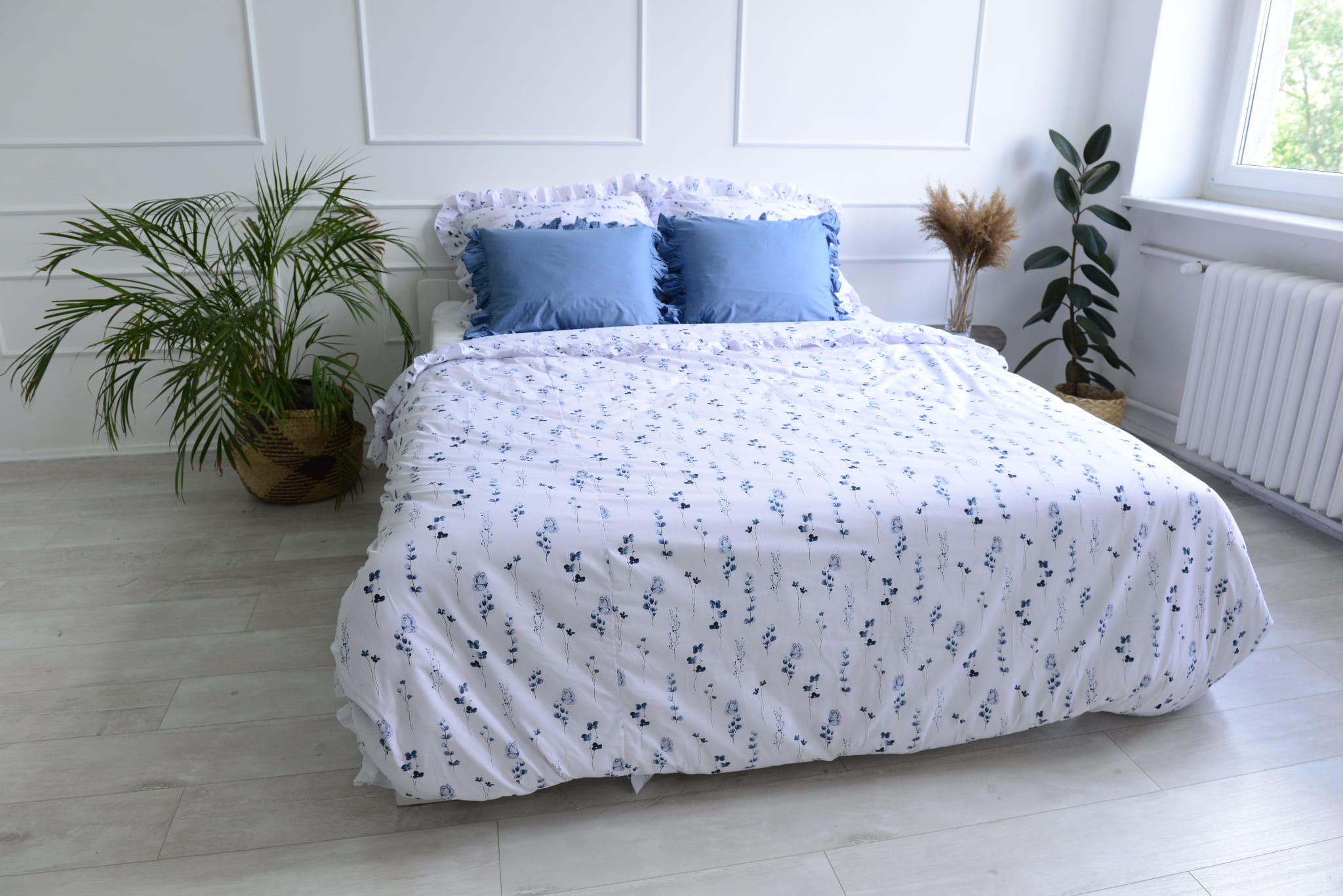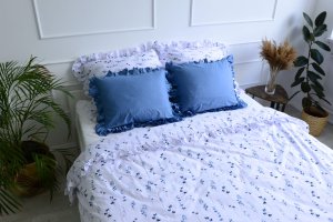 Cotton bedding with a frill made of the highest quality cotton material with the oeko-tex 1000 certificate. The bedding has a sewn frill on each side in both pillowcases (pillow and quilt). The bedding is closed with strings. In addition, it has a strip sewn inside, thanks to which it will be easy to hide the bedding and it will not protrude during use.