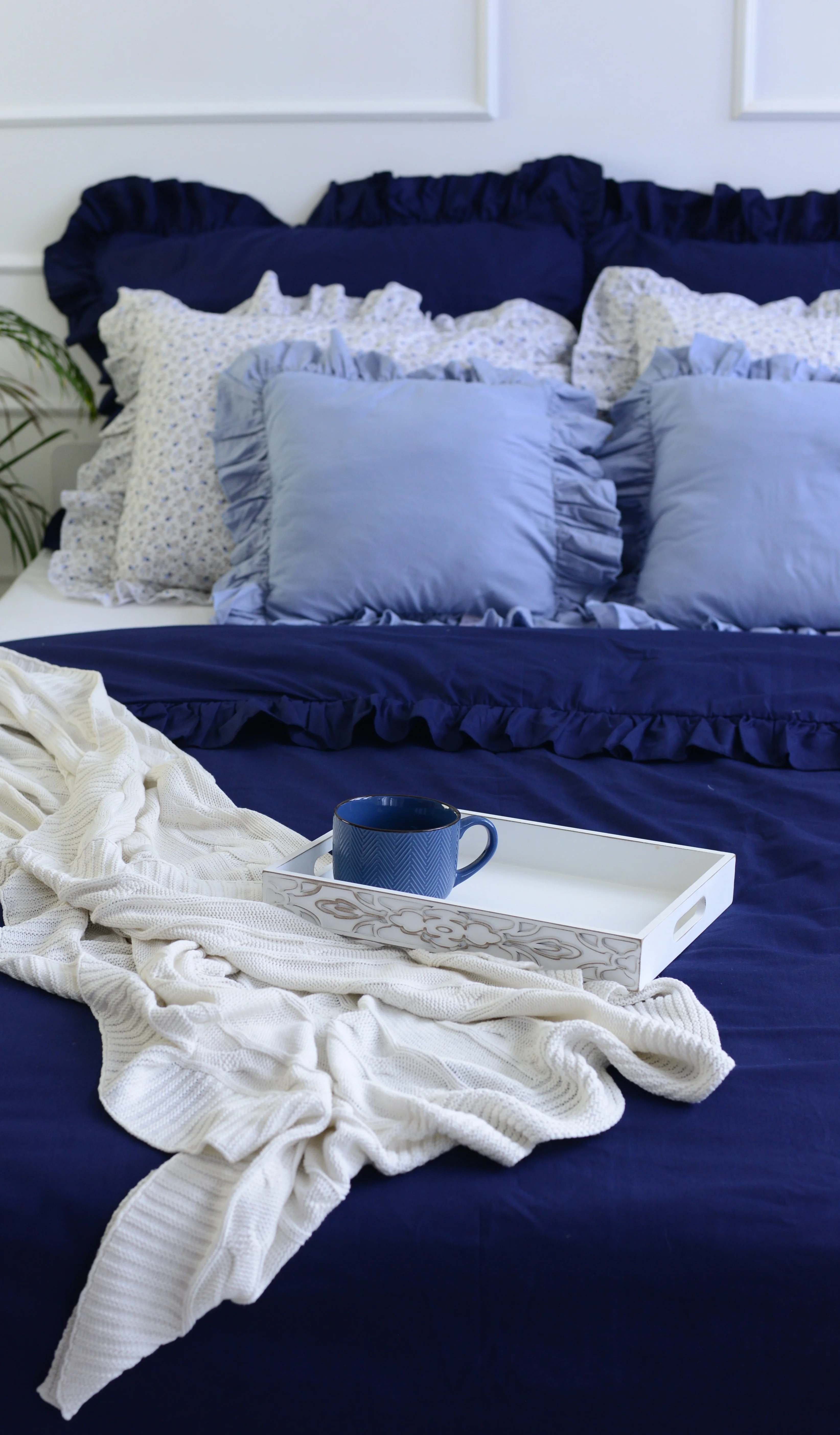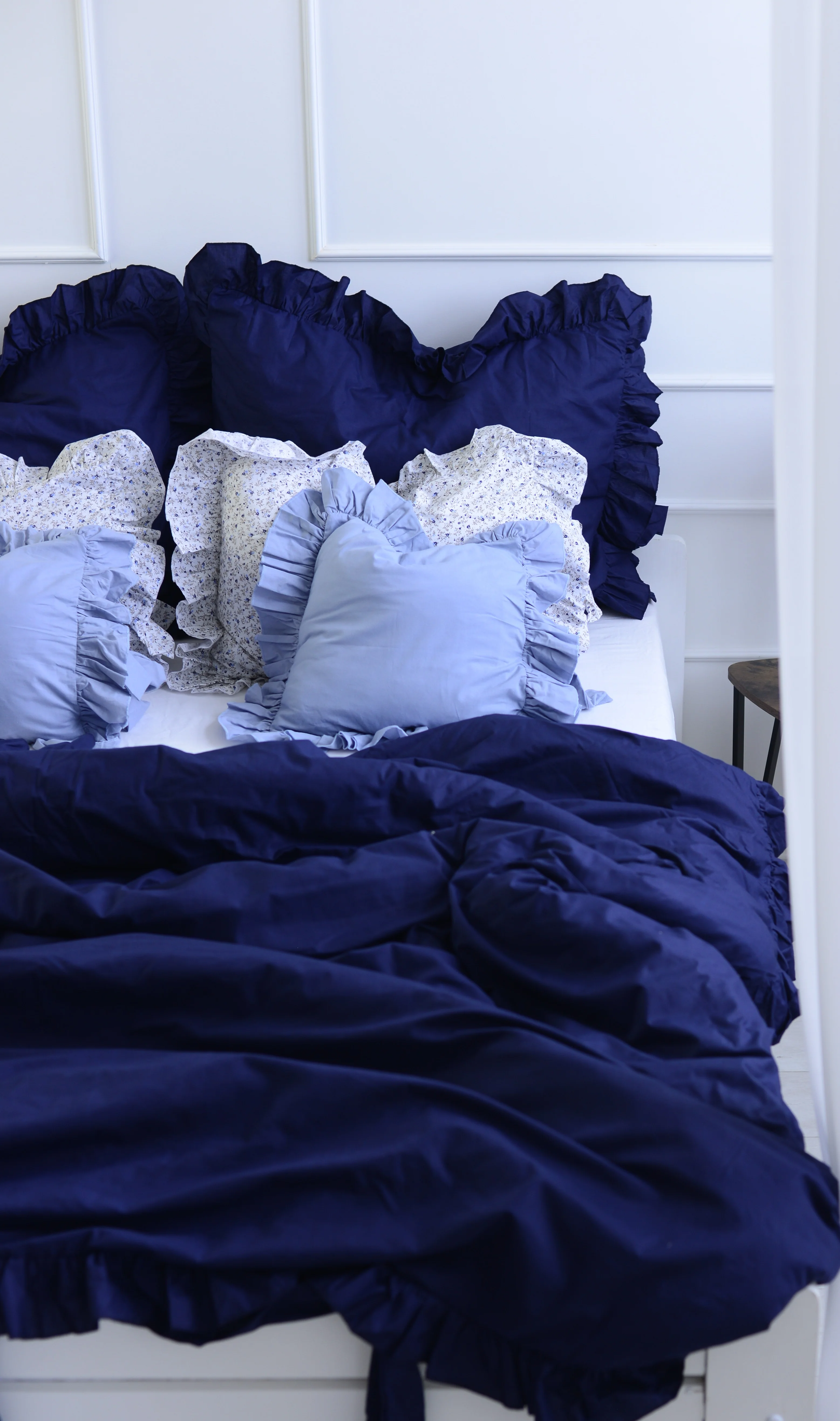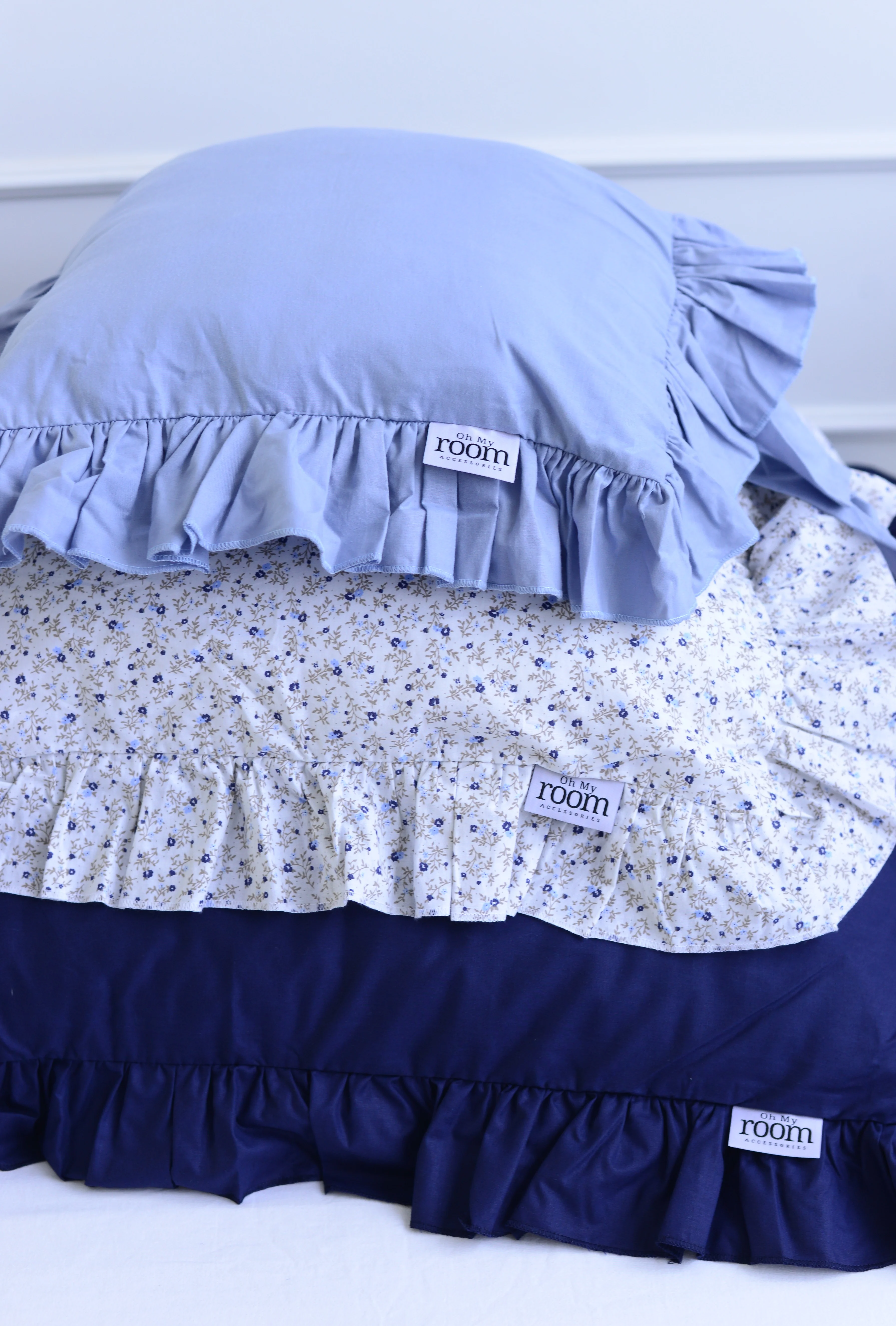 Cotton pillowcase with frill denim