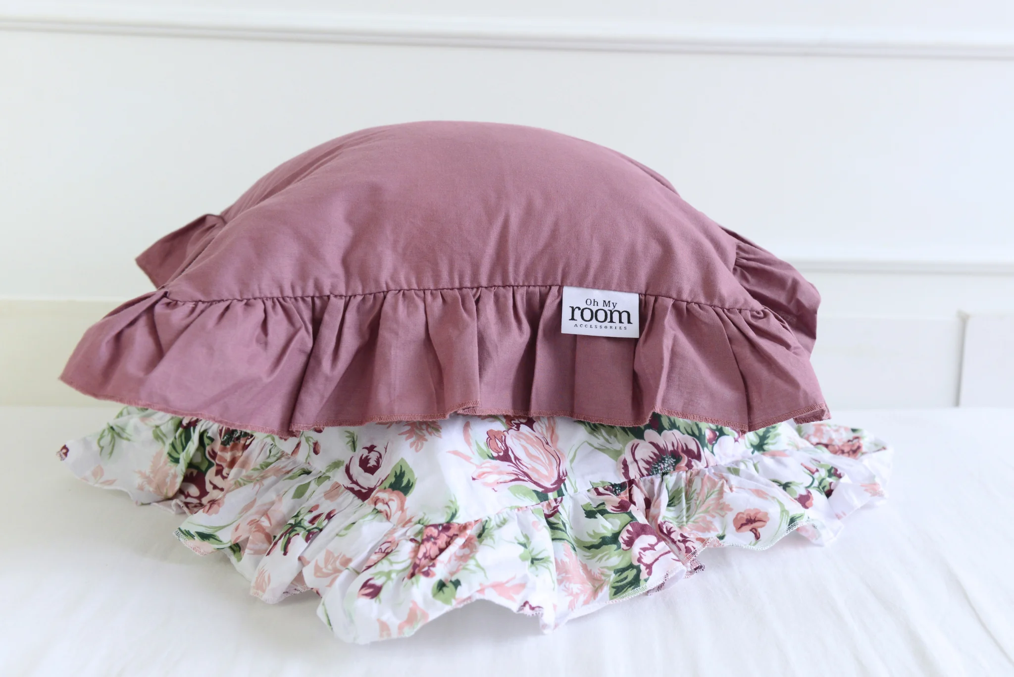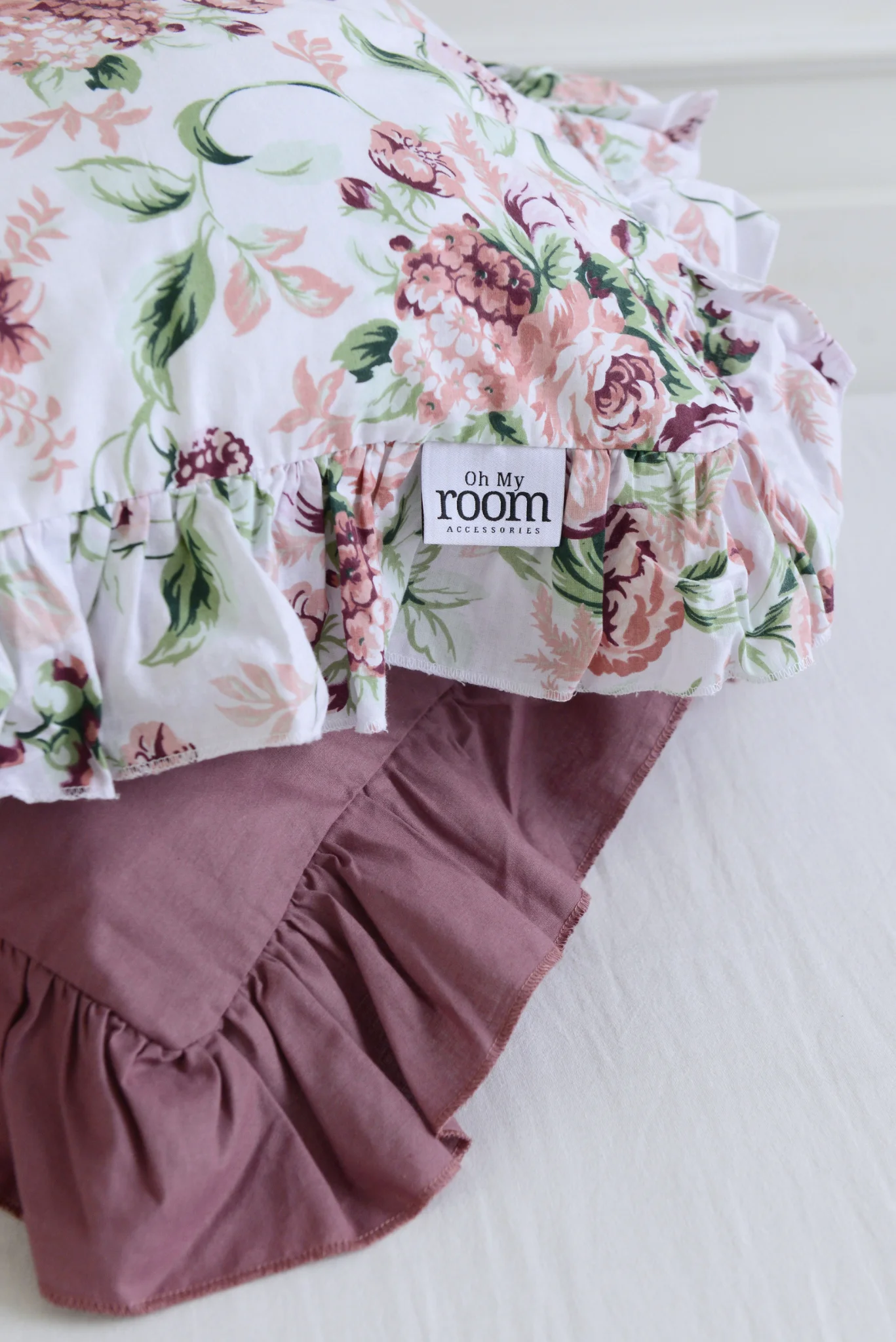 Cotton pillowcase with a frill made of the highest quality cotton material with the Oeko-Tex 1000 certificate.The pillowcase is closed with bow. In addition, it has a sewn-in strip, thanks to which it will be easy to hide the bedding and will not protrude during use.
