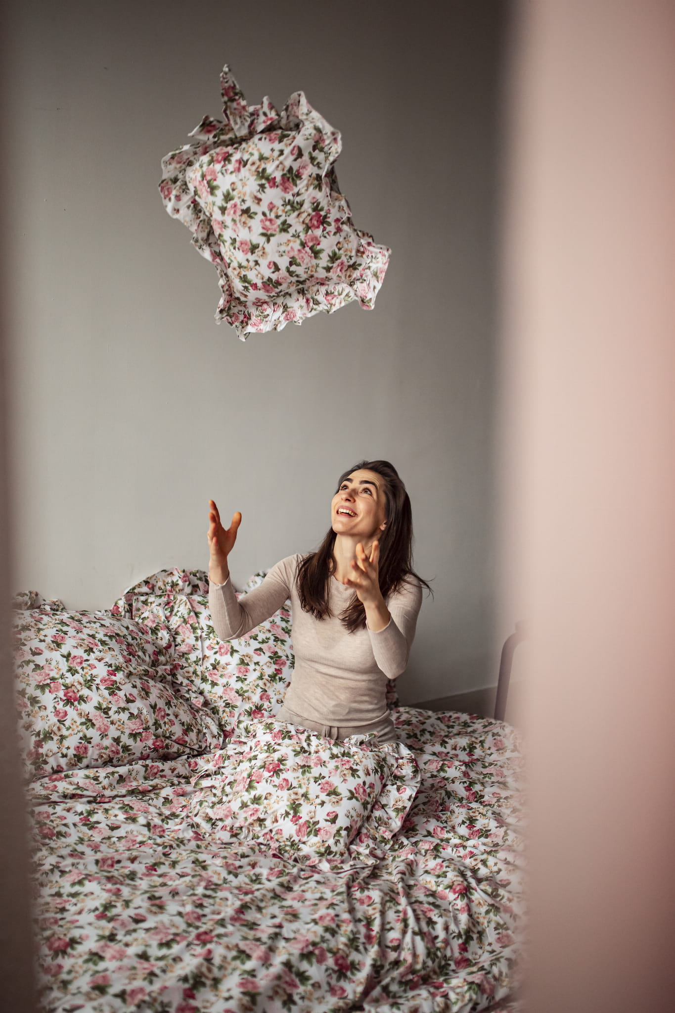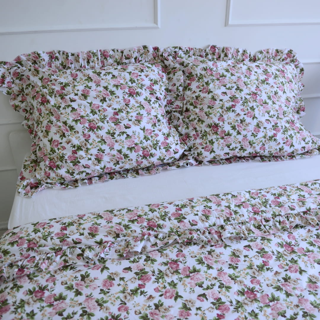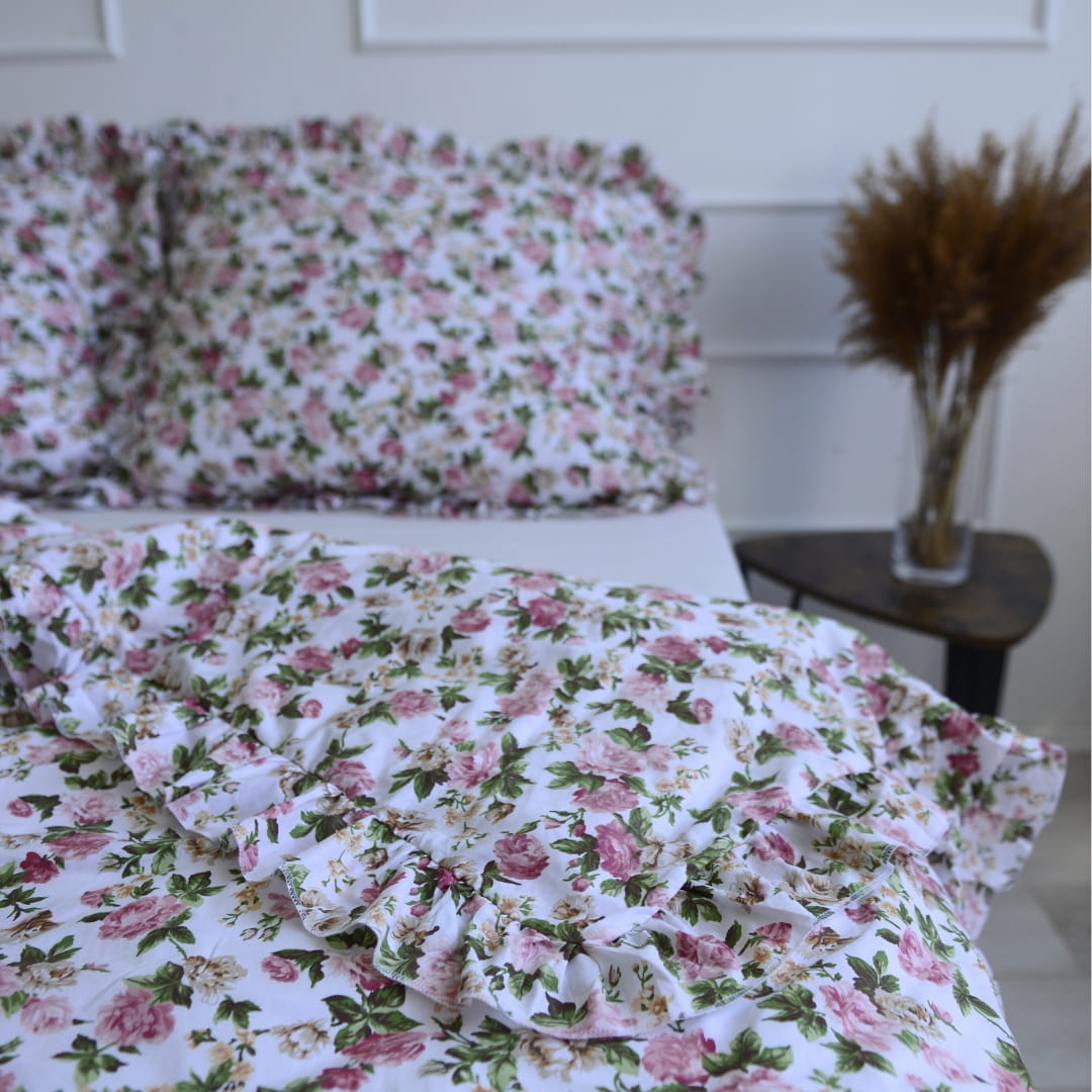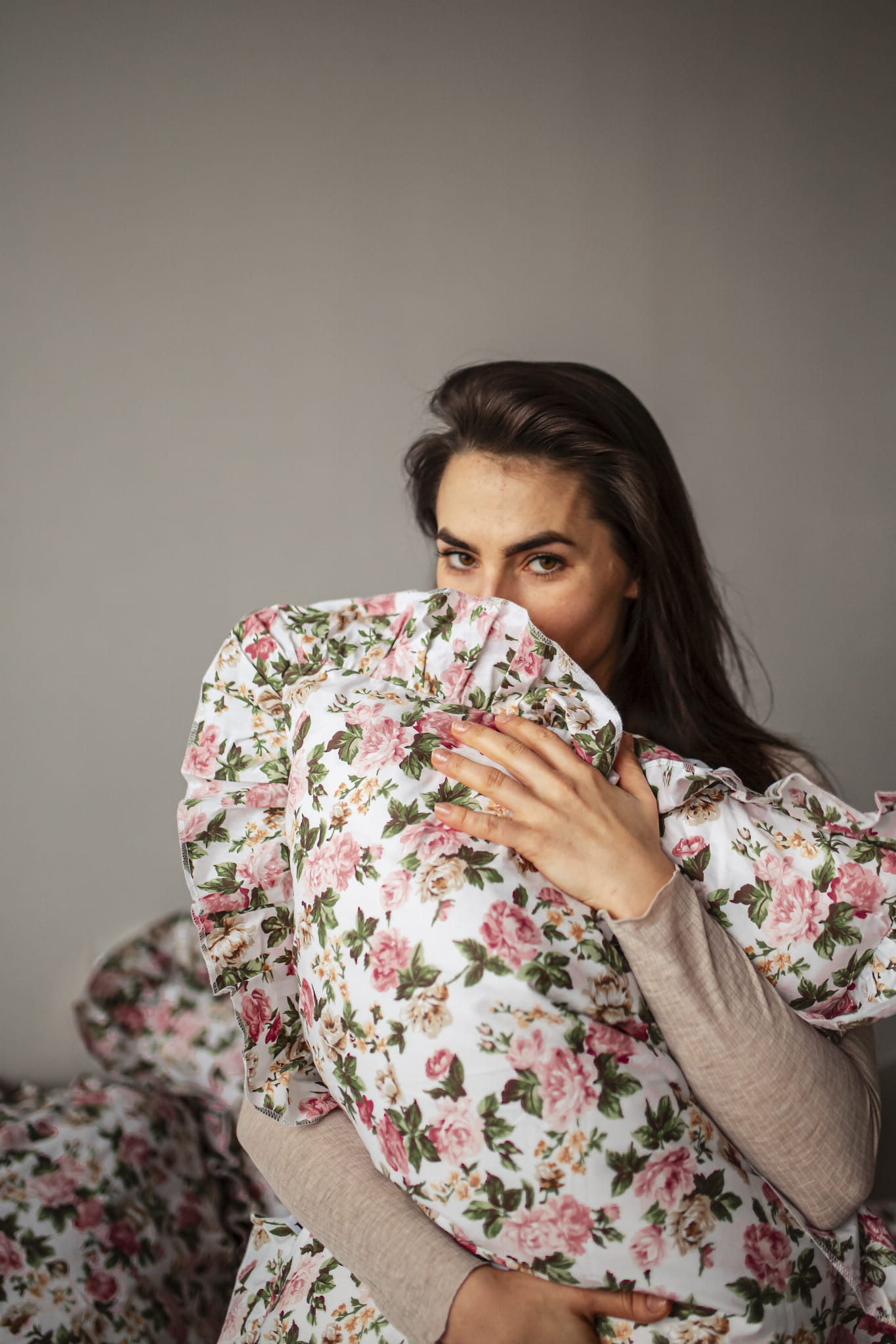 Cotton pillowcase with a frill made of the highest quality cotton material with the Oeko-Tex 1000 certificate.The pillowcase is closed with bow. In addition, it has a sewn-in strip, thanks to which it will be easy to hide the bedding and will not protrude during use.