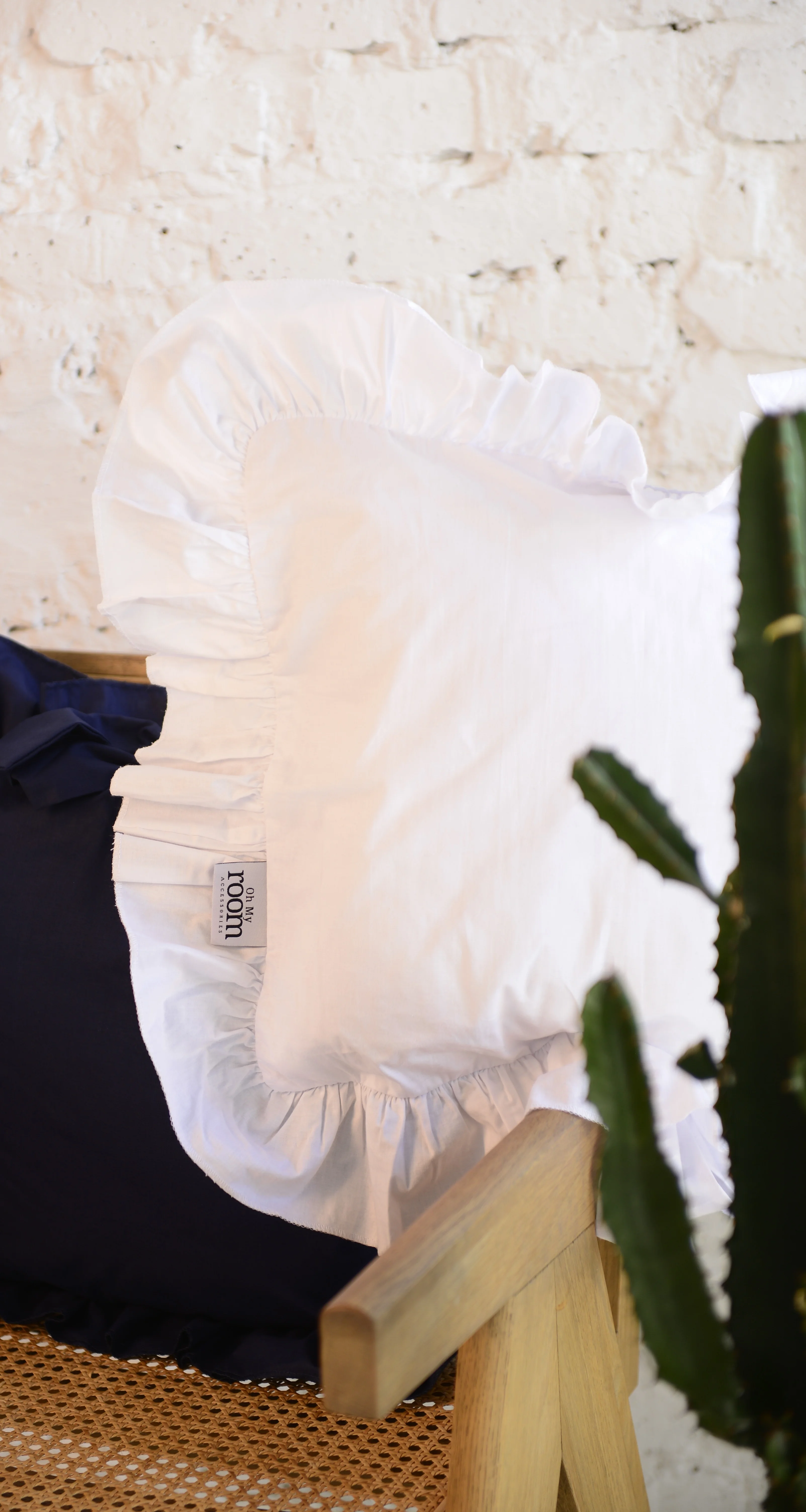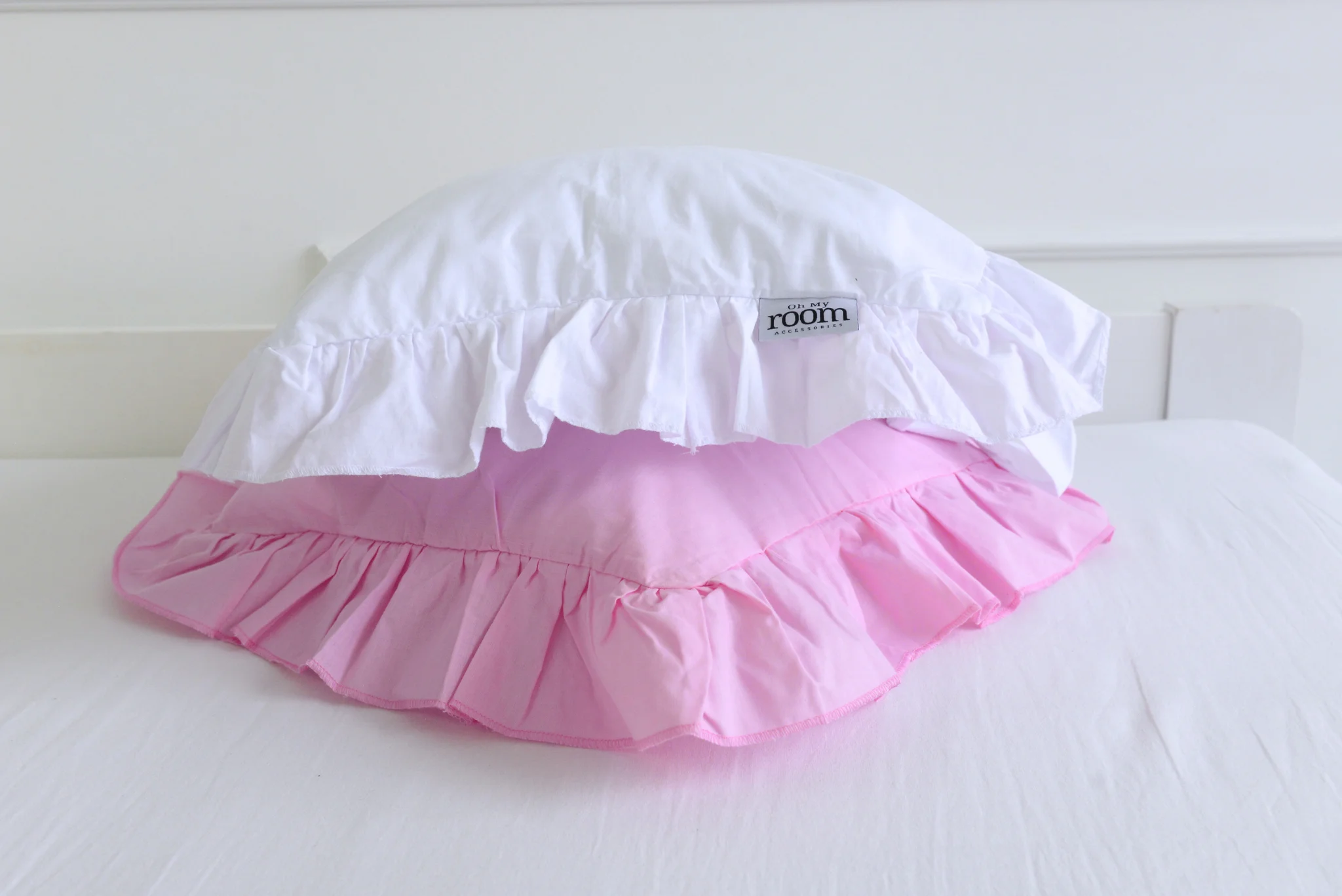 Cotton pillowcase with frill white