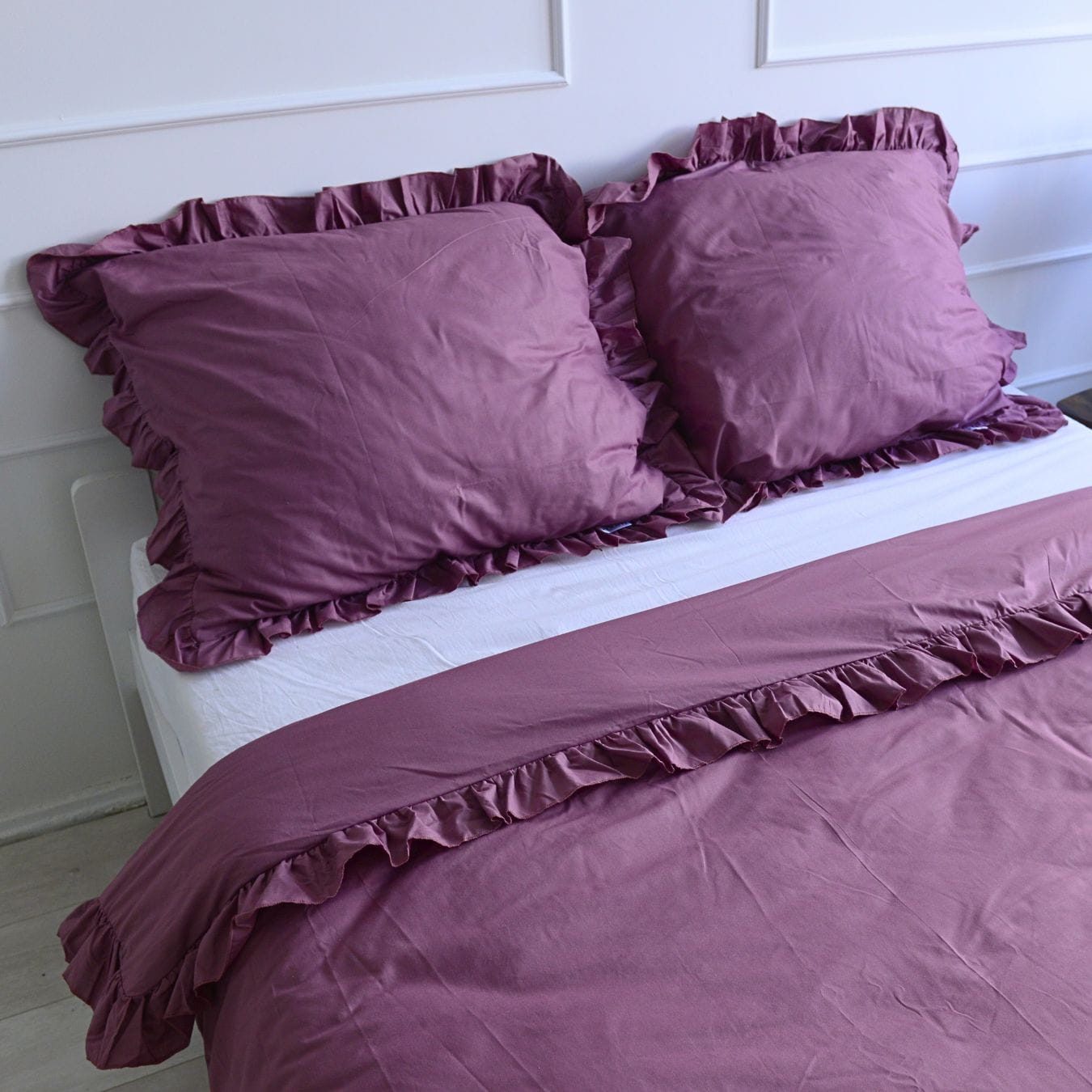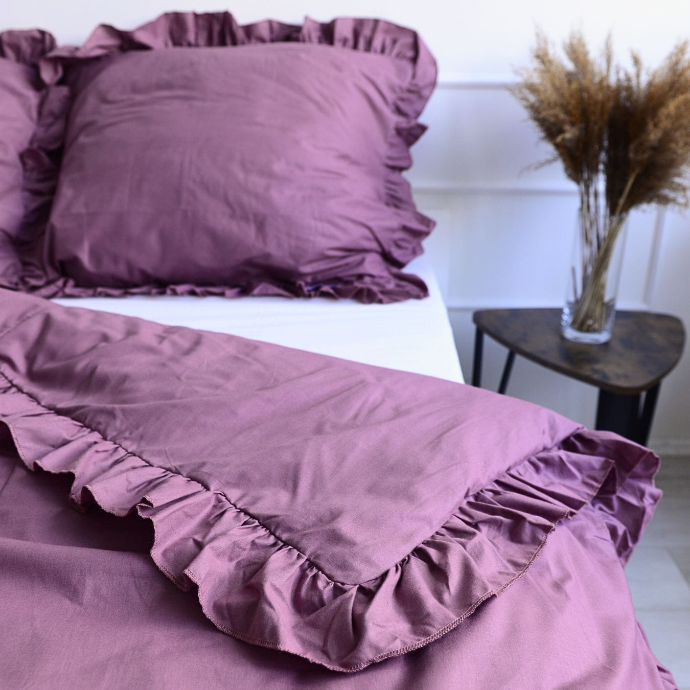 Cotton bedlinen with frill dusty pink 220/200 (1)
