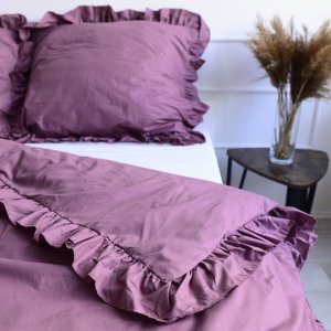 Cotton bedding with a frill made of the highest quality cotton material with the oeko-tex 1000 certificate. The bedding has a sewn frill on each side in both pillowcases (pillow and quilt). The bedding is closed with strings. In addition, it has a strip sewn inside, thanks to which it will be easy to hide the bedding and it will not protrude during use.
