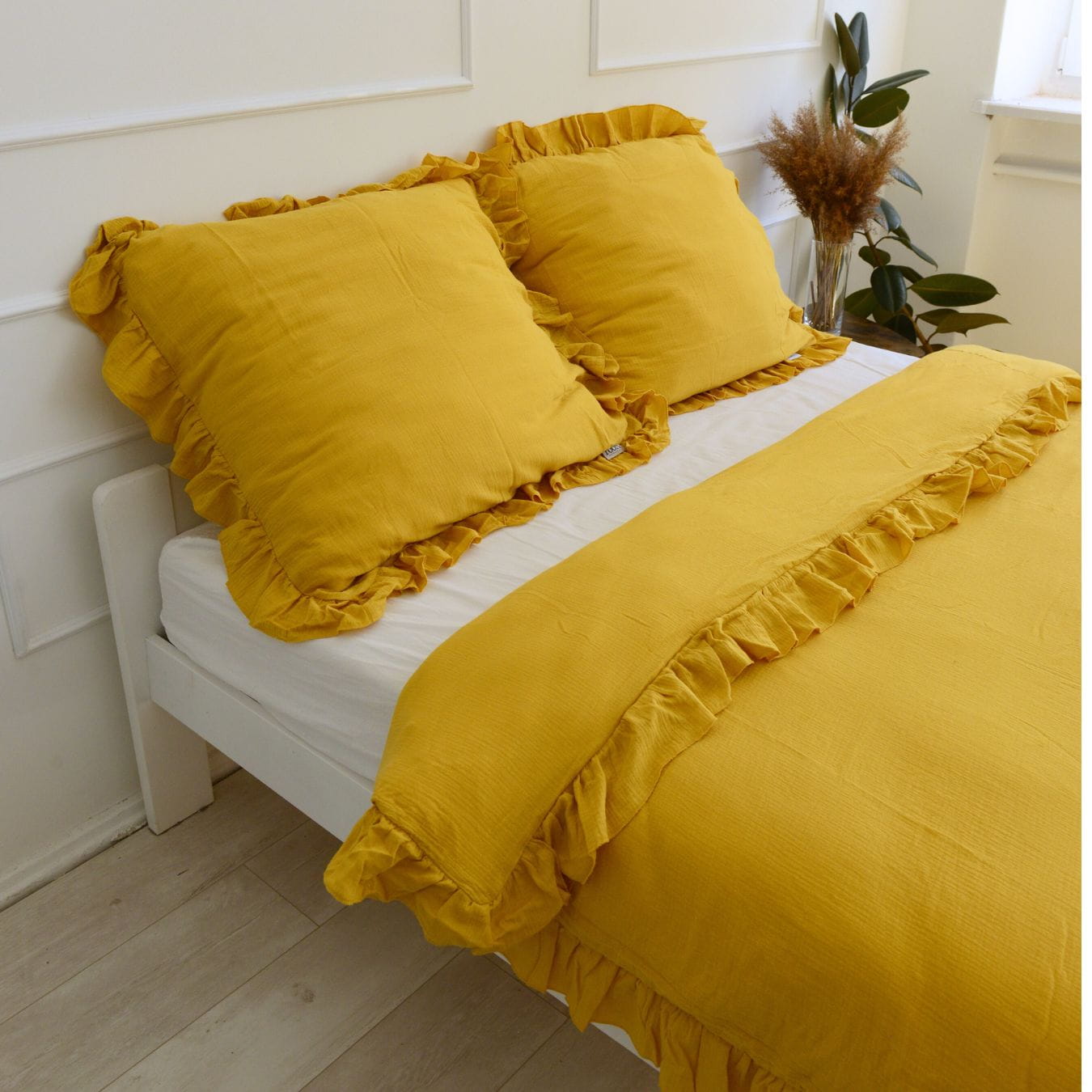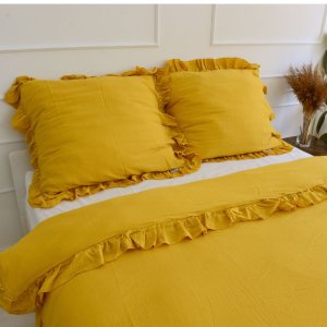 Cotton pillowcase with a frill made of the highest quality cotton material with the Oeko-Tex 1000 certificate.The pillowcase is closed with bow. In addition, it has a sewn-in strip, thanks to which it will be easy to hide the bedding and will not protrude during use.