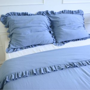 Cotton pillowcase with a frill made of the highest quality cotton material with the Oeko-Tex 1000 certificate.The pillowcase is closed with bow. In addition, it has a sewn-in strip, thanks to which it will be easy to hide the bedding and will not protrude during use.