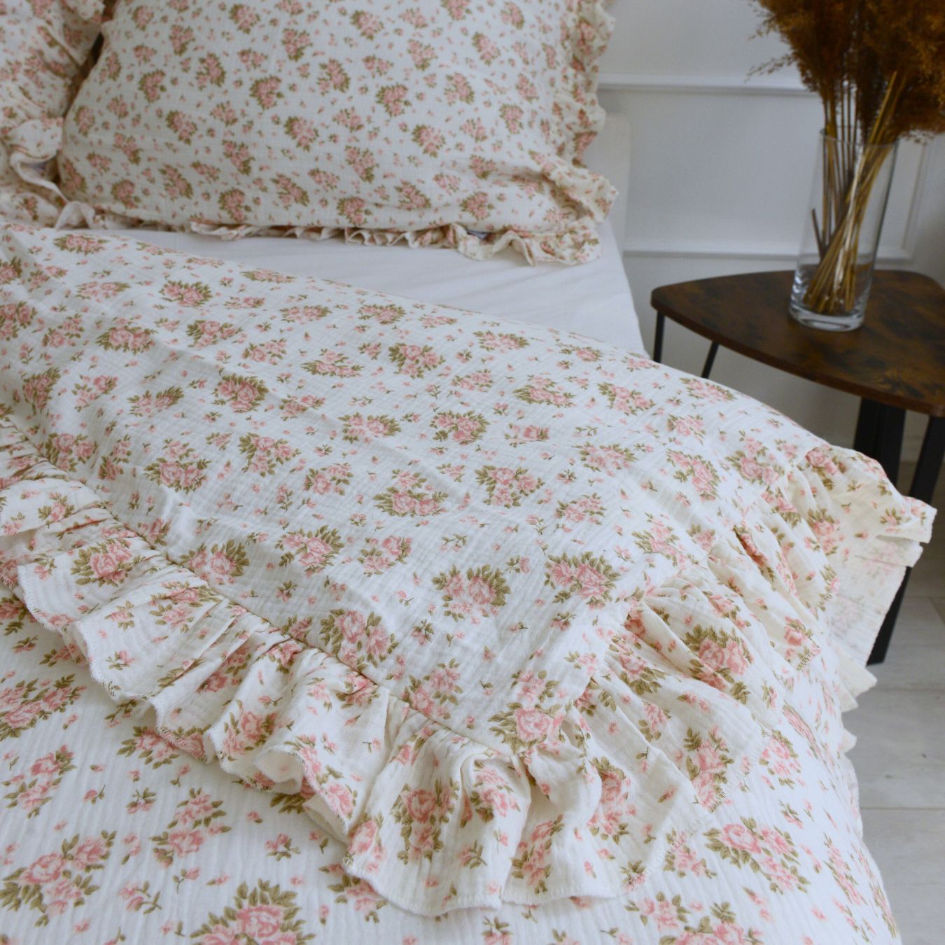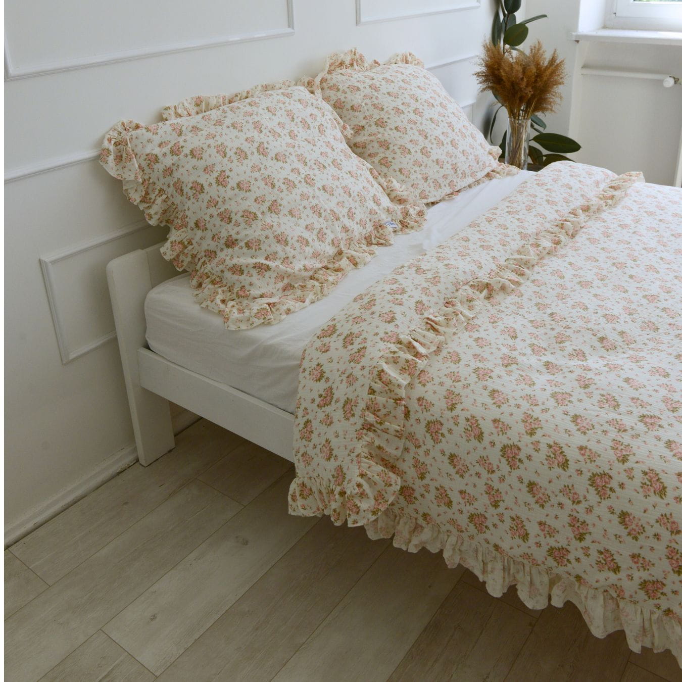 Cotton pillowcase with a frill made of the highest quality cotton material with the Oeko-Tex 1000 certificate.The pillowcase is closed with bow. In addition, it has a sewn-in strip, thanks to which it will be easy to hide the bedding and will not protrude during use.