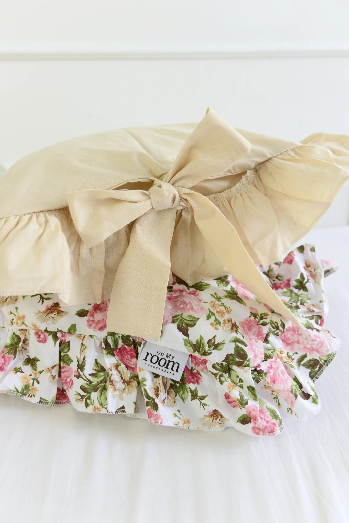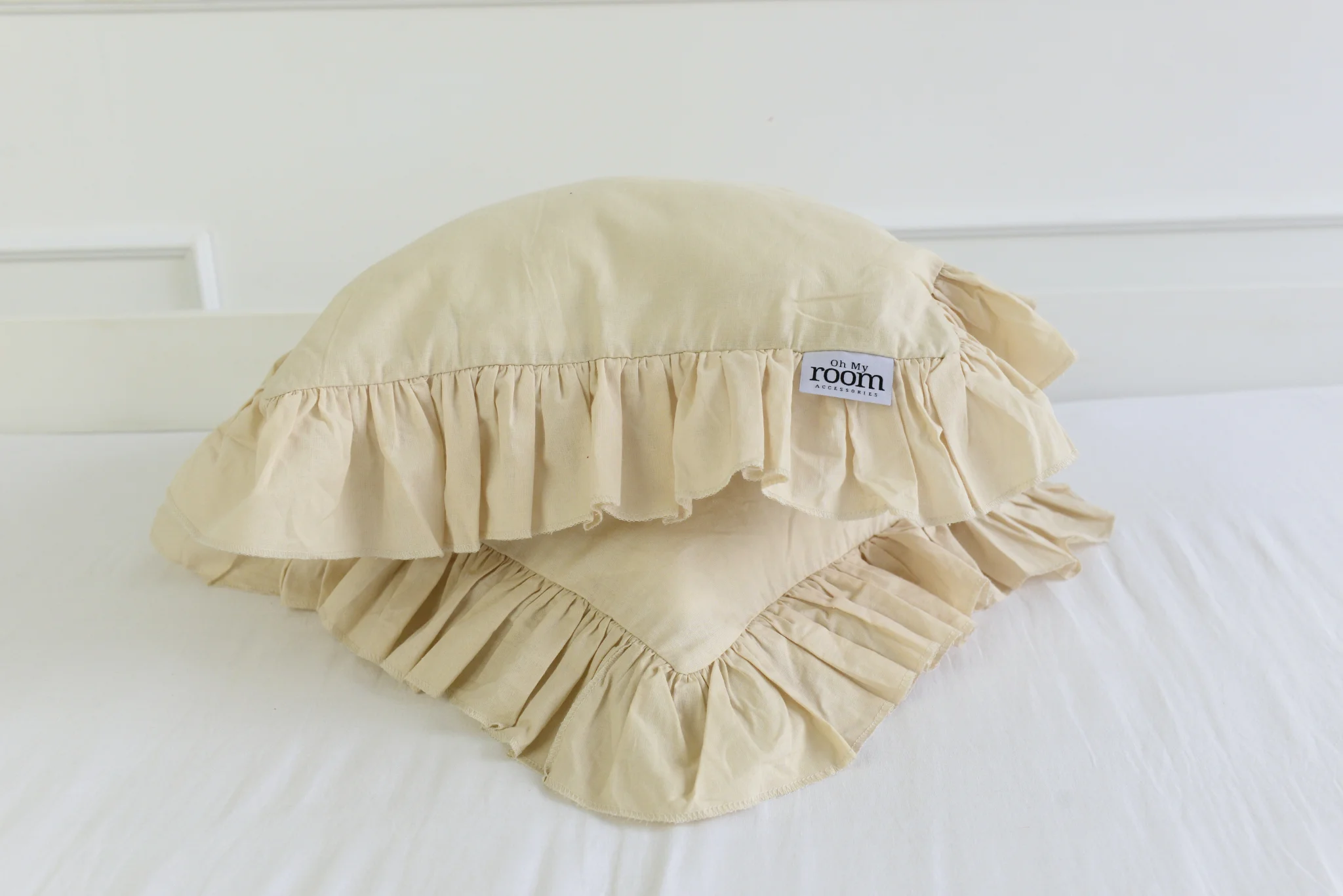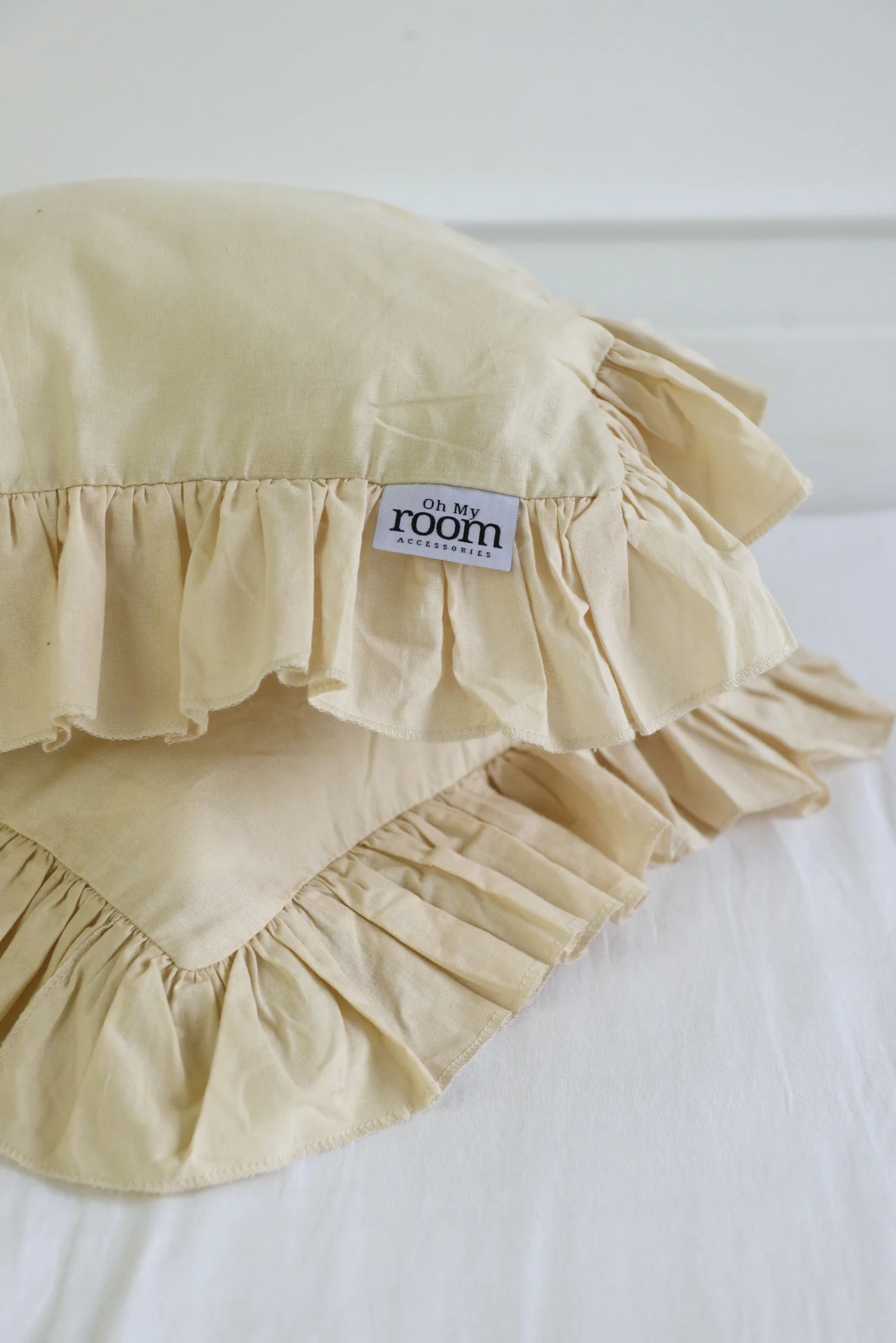 Cotton pillowcase with a frill made of the highest quality cotton material with the Oeko-Tex 1000 certificate.The pillowcase is closed with bow. In addition, it has a sewn-in strip, thanks to which it will be easy to hide the bedding and will not protrude during use.