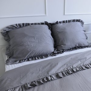 Cotton pillowcase with a frill made of the highest quality cotton material with the Oeko-Tex 1000 certificate.The pillowcase is closed with bow. In addition, it has a sewn-in strip, thanks to which it will be easy to hide the bedding and will not protrude during use.