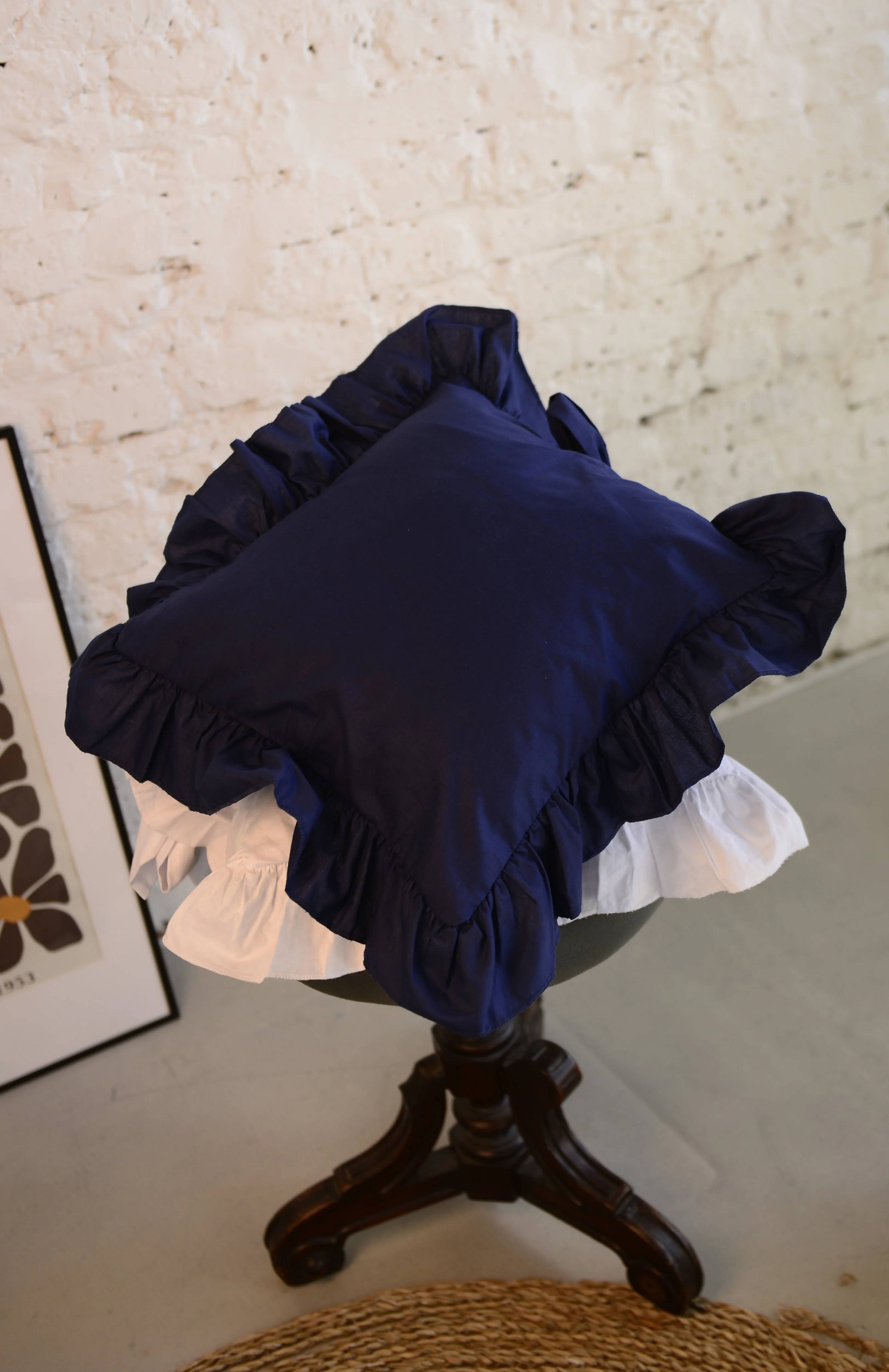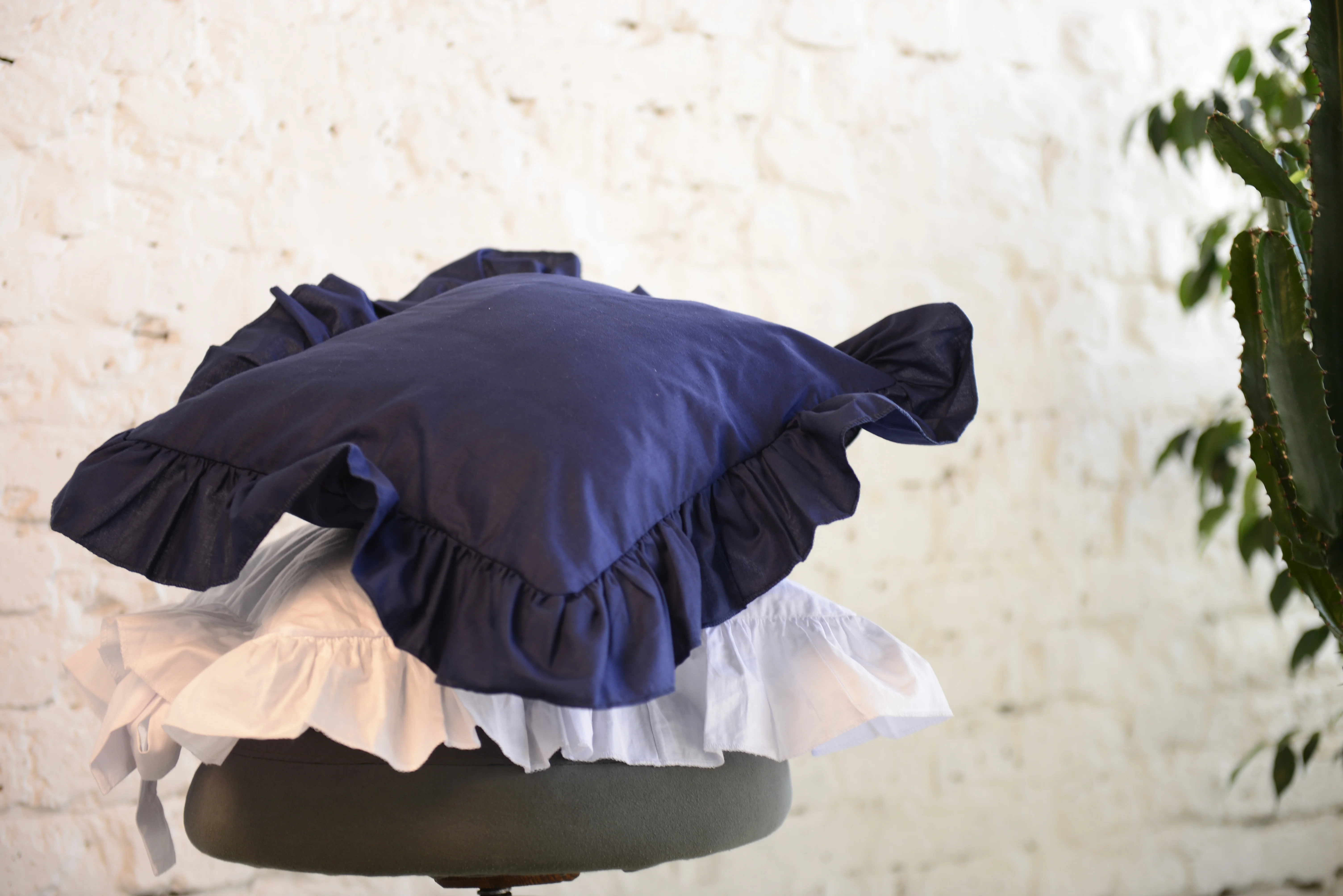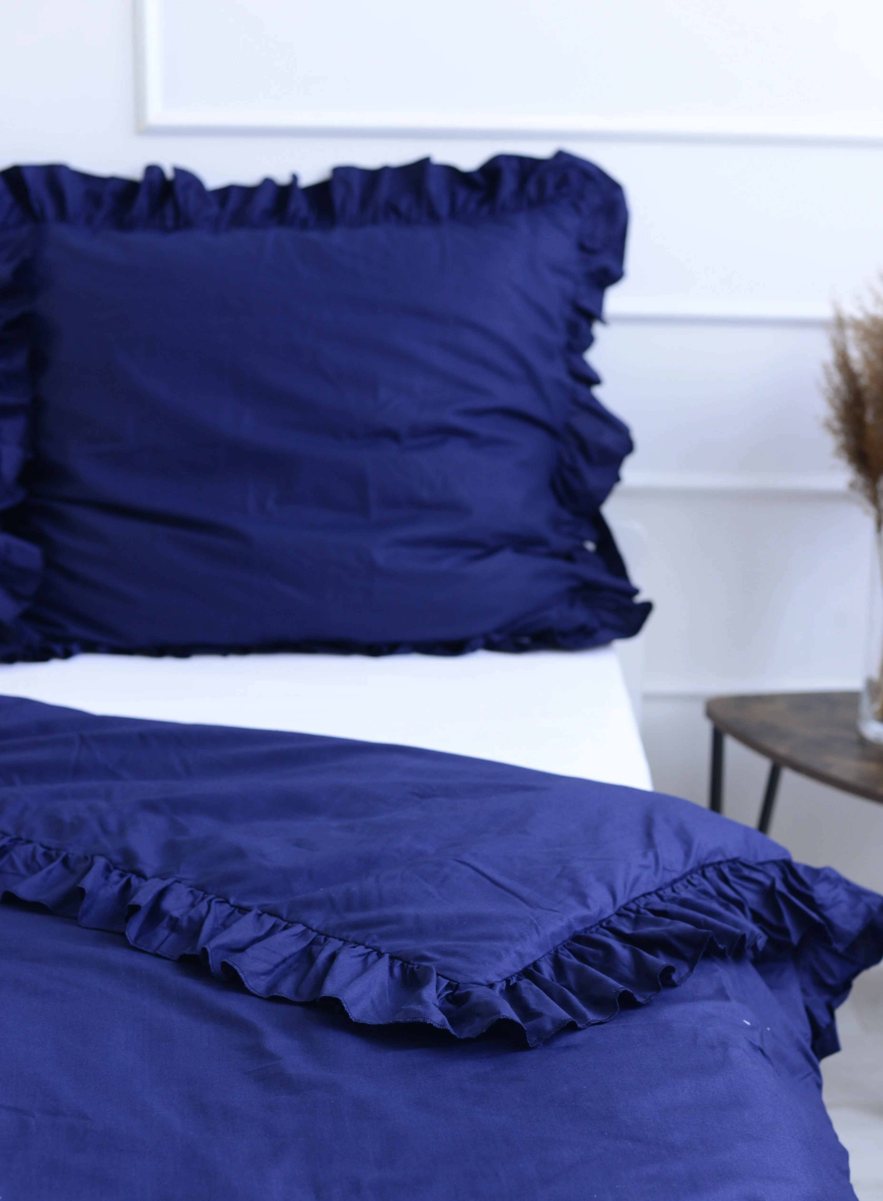 Cotton pillowcase with frill navy