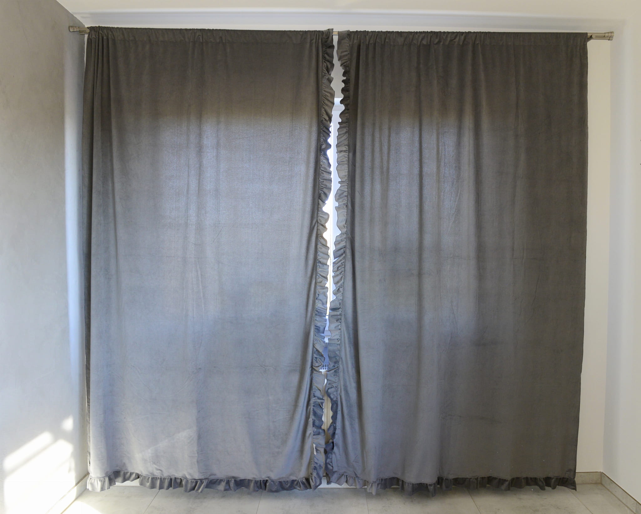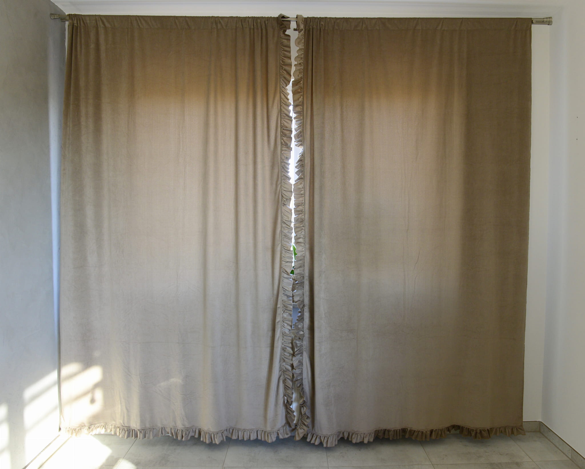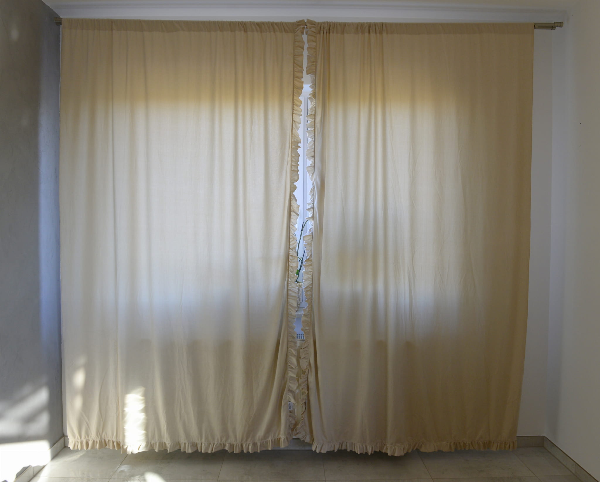 Chiffon curtains with ruffle. Curtains are ideal for living room, bedroom or children's room. They have a tunnel so you can easily fix them. The curtains have sewn frills which gives them a unique look.