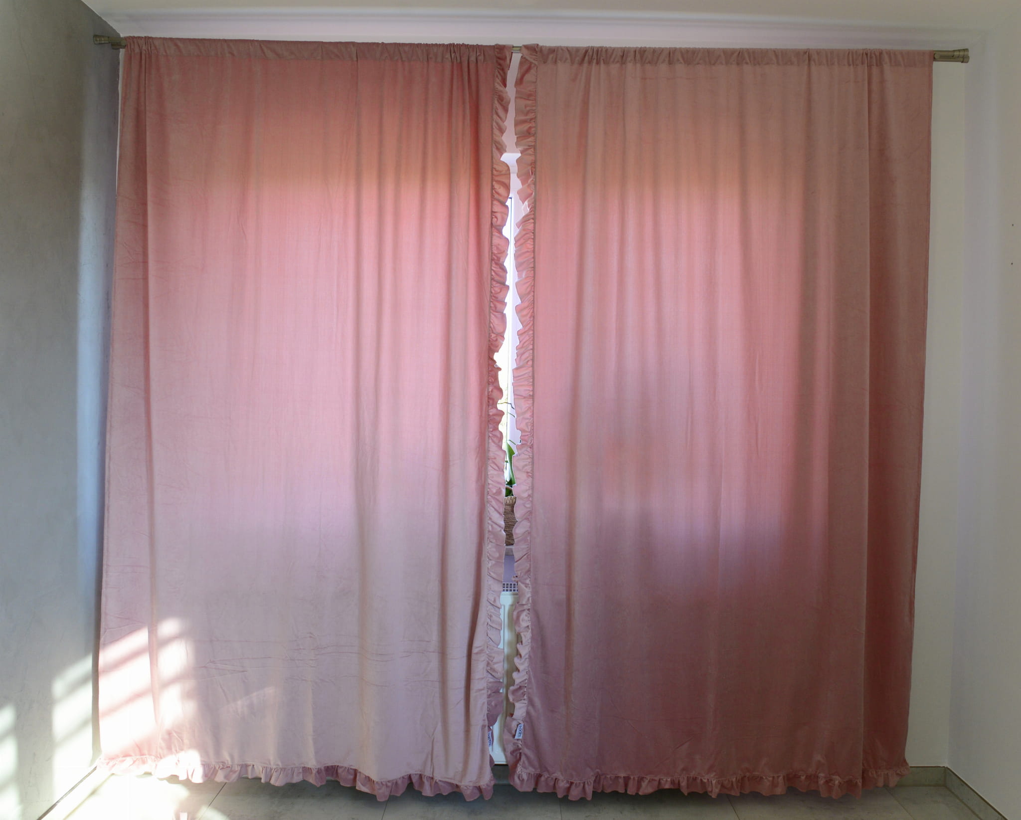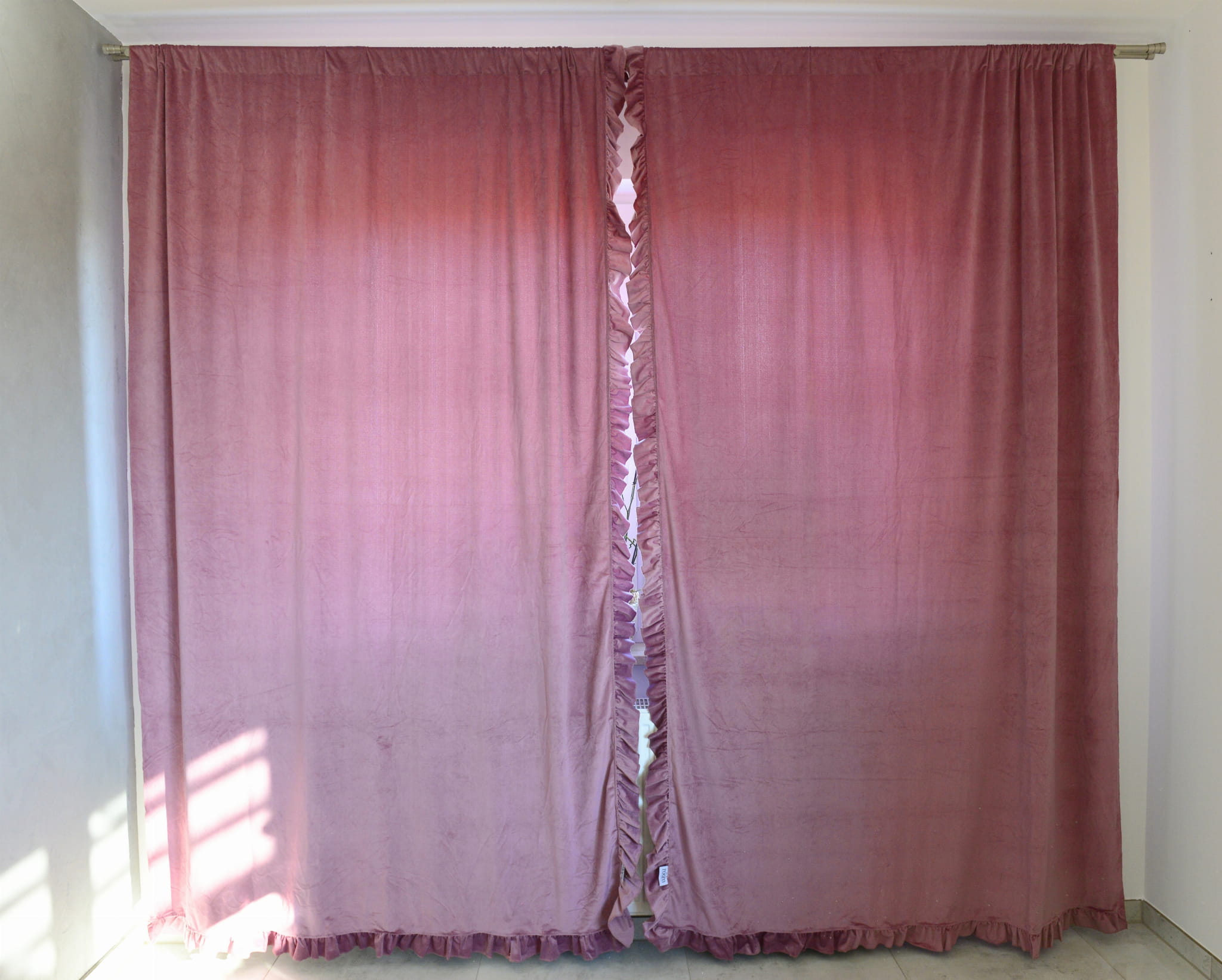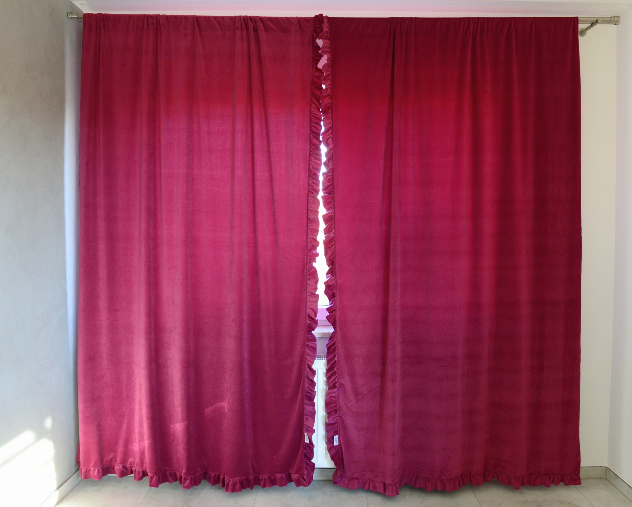 Chiffon curtains with ruffle. Curtains are ideal for living room, bedroom or children's room. They have a tunnel so you can easily fix them. The curtains have sewn frills which gives them a unique look.
