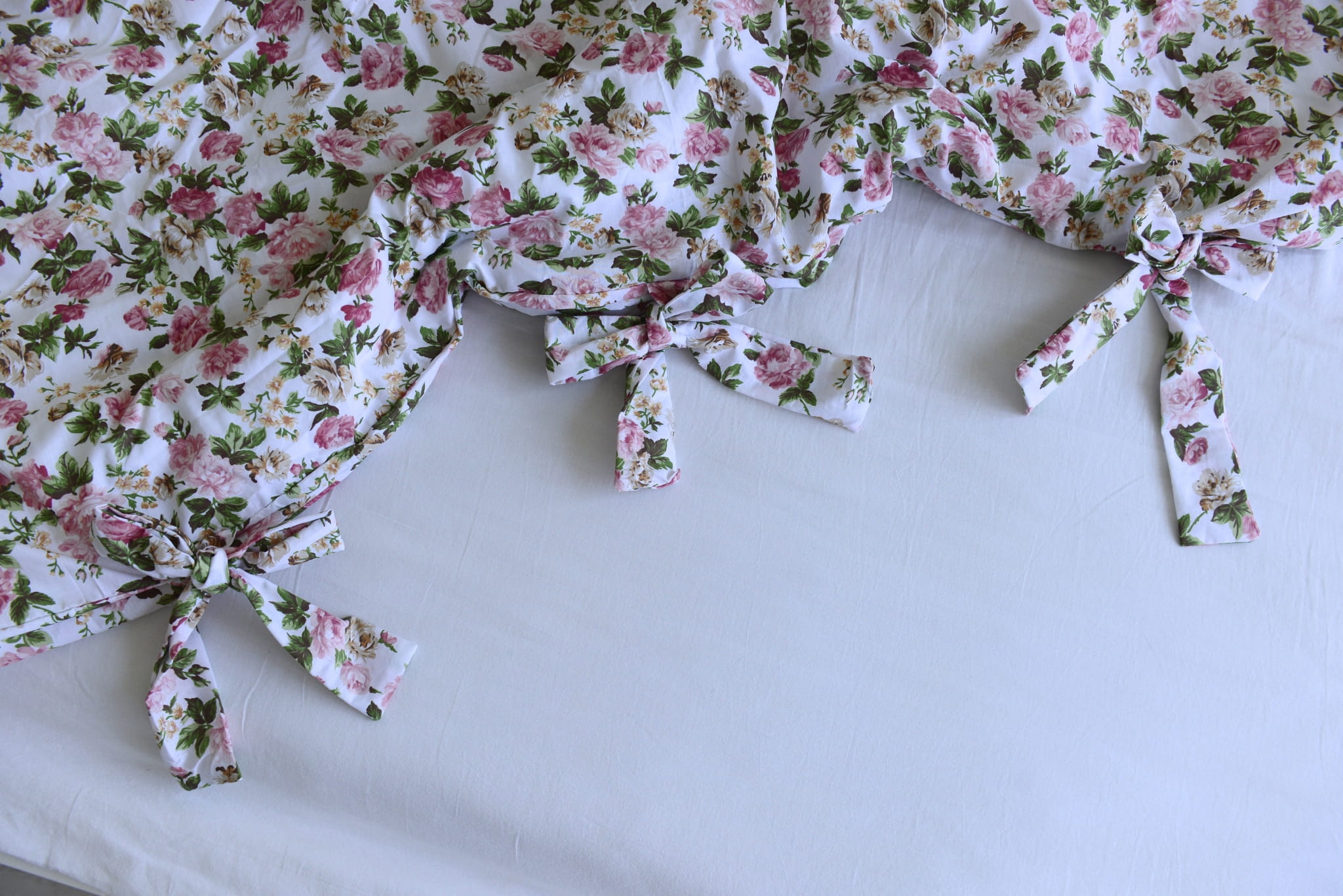 Pościel posiada wszytą falbankę z każdej strony w obu poszewkach (poduszka i kołdra). Pościel jest zamykana na troczki.