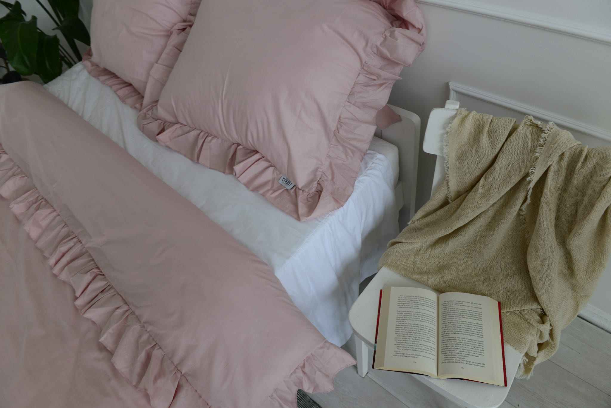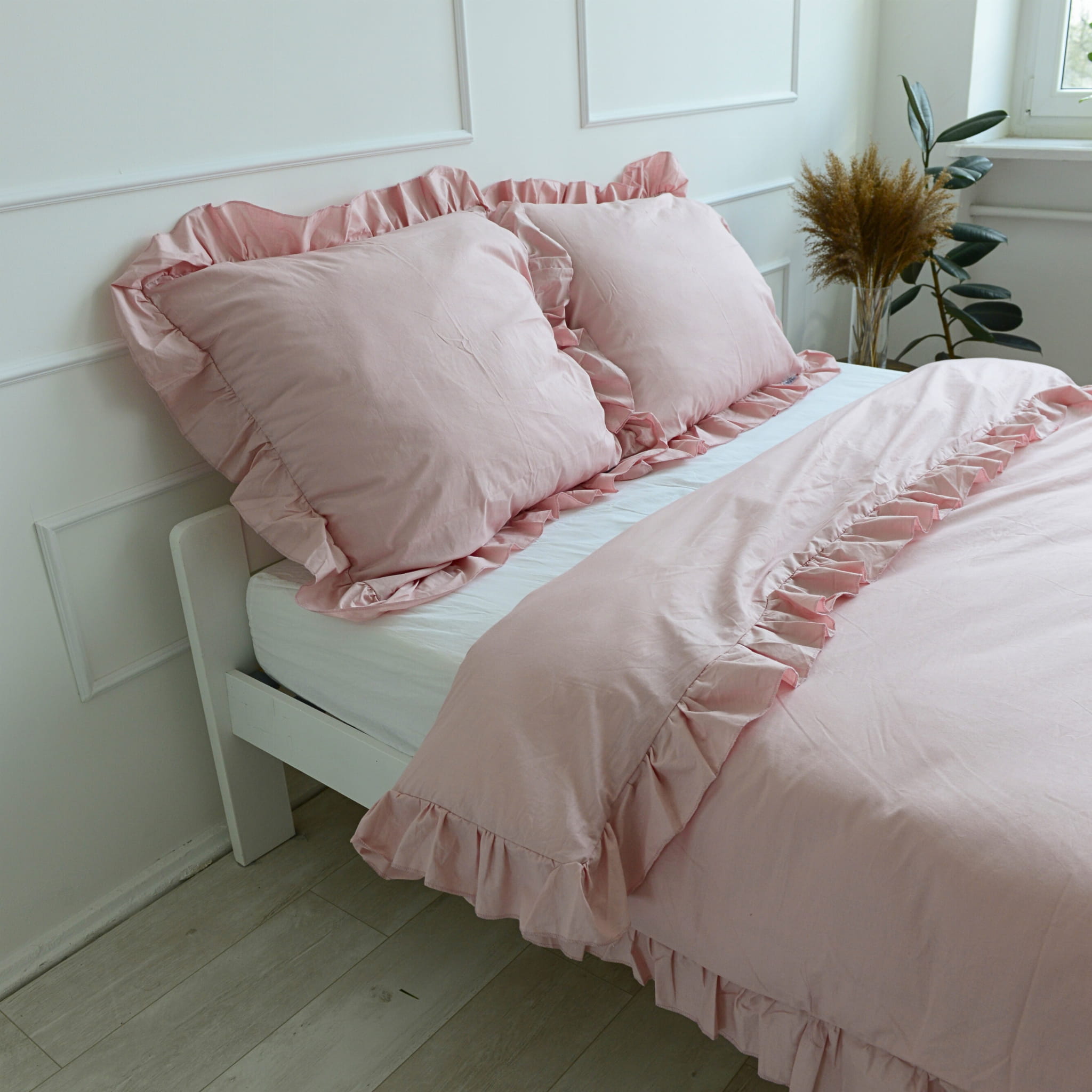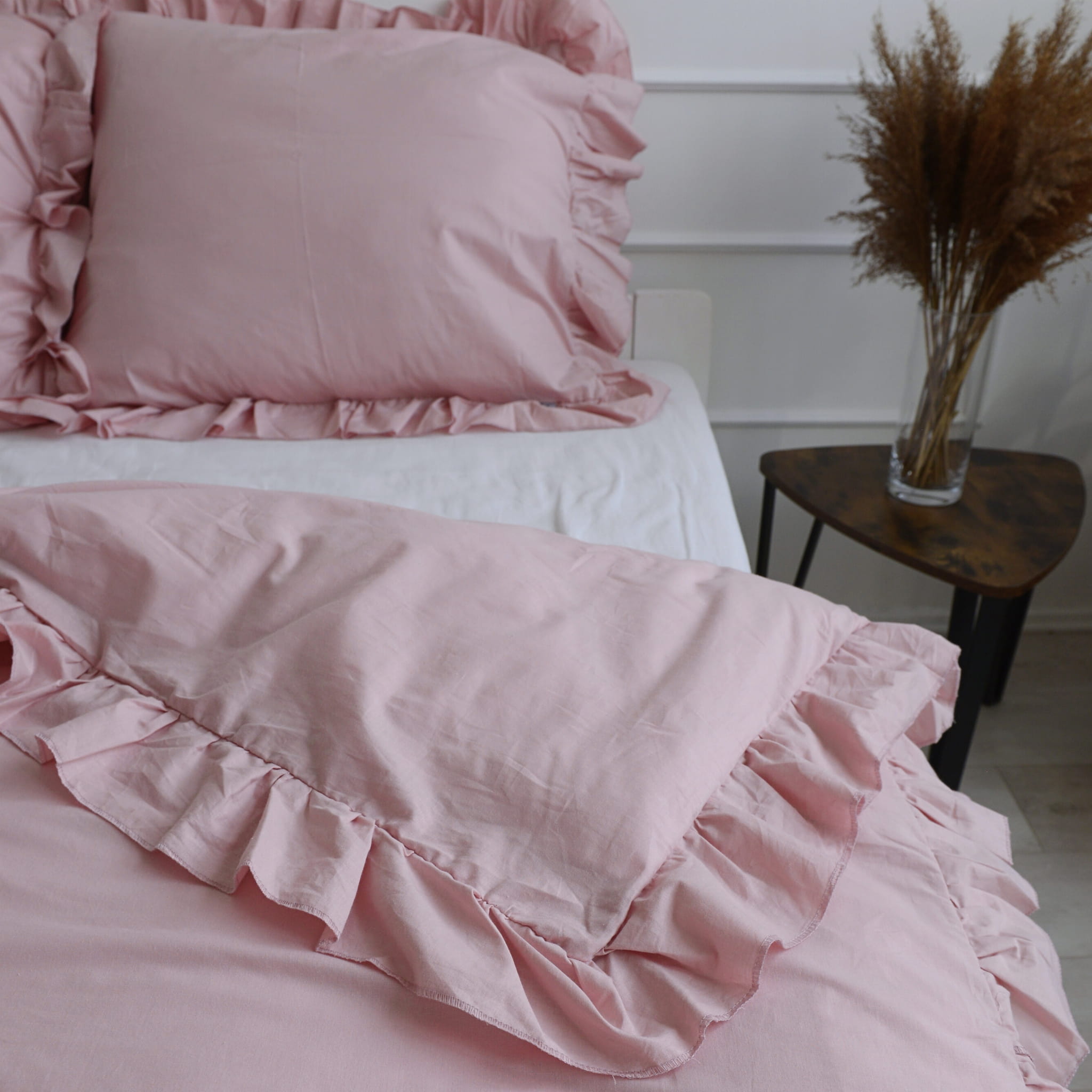 Pościel bawełniana z falbanką - brudny róż