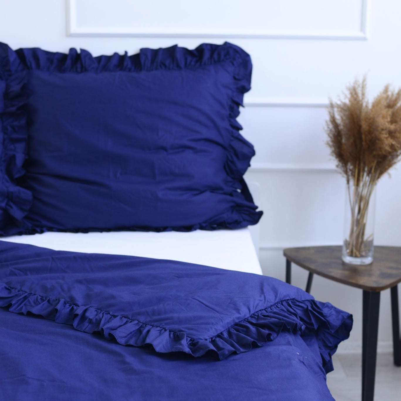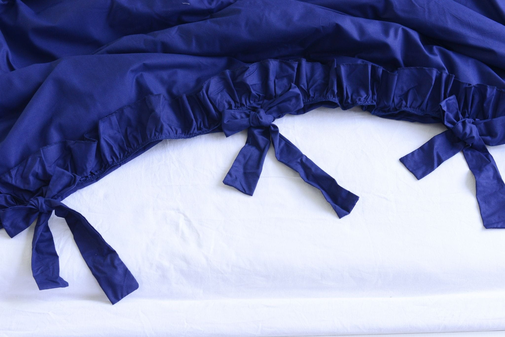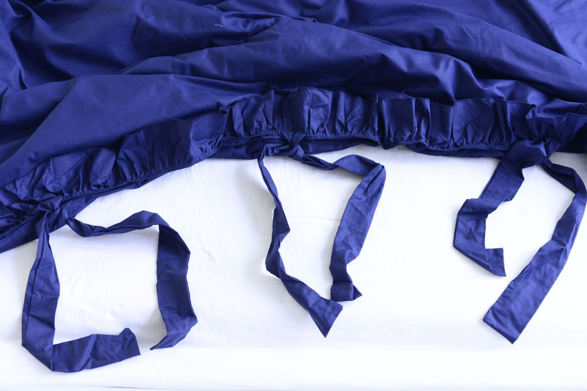 Pościel bawełniana z falbanką - granatowa