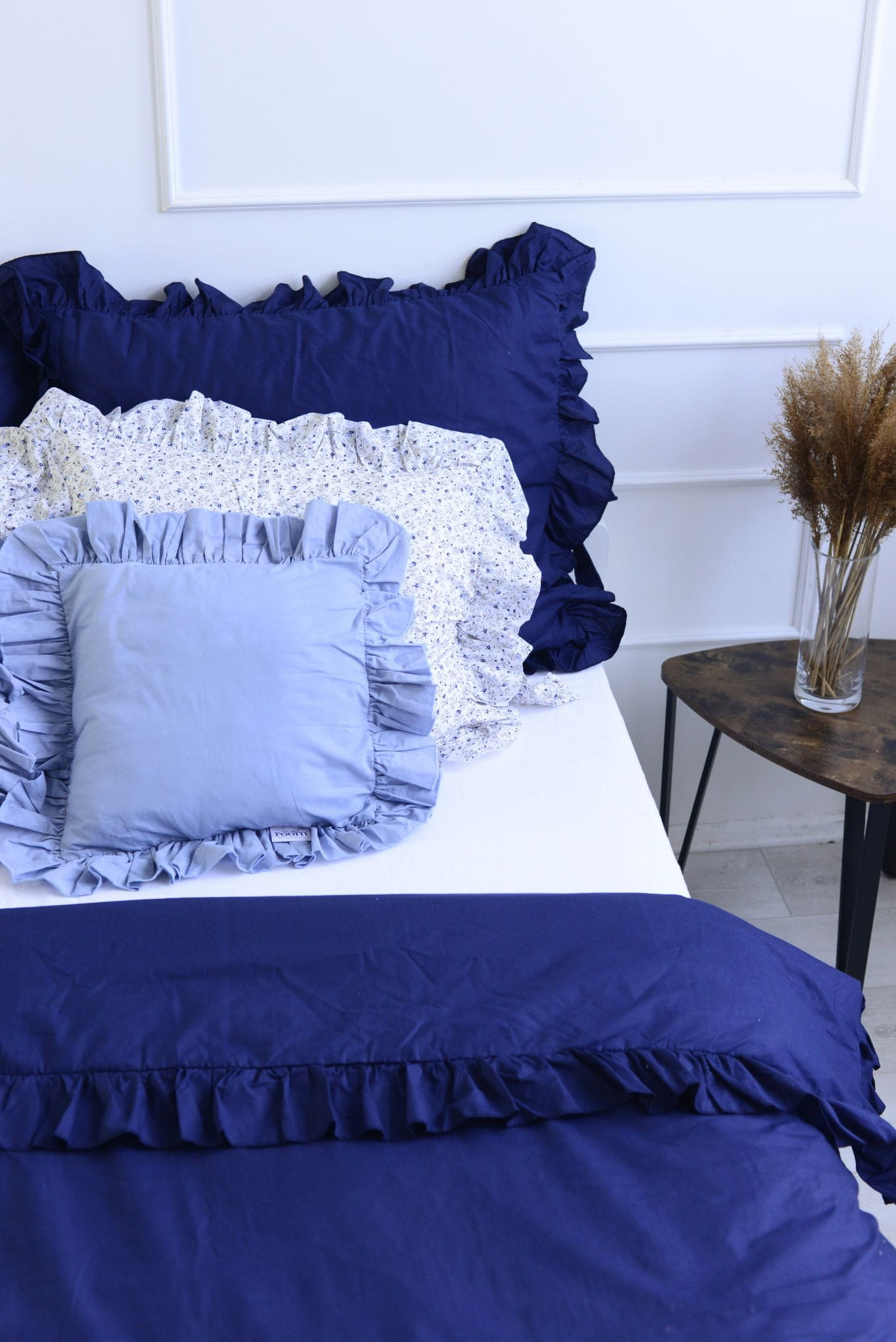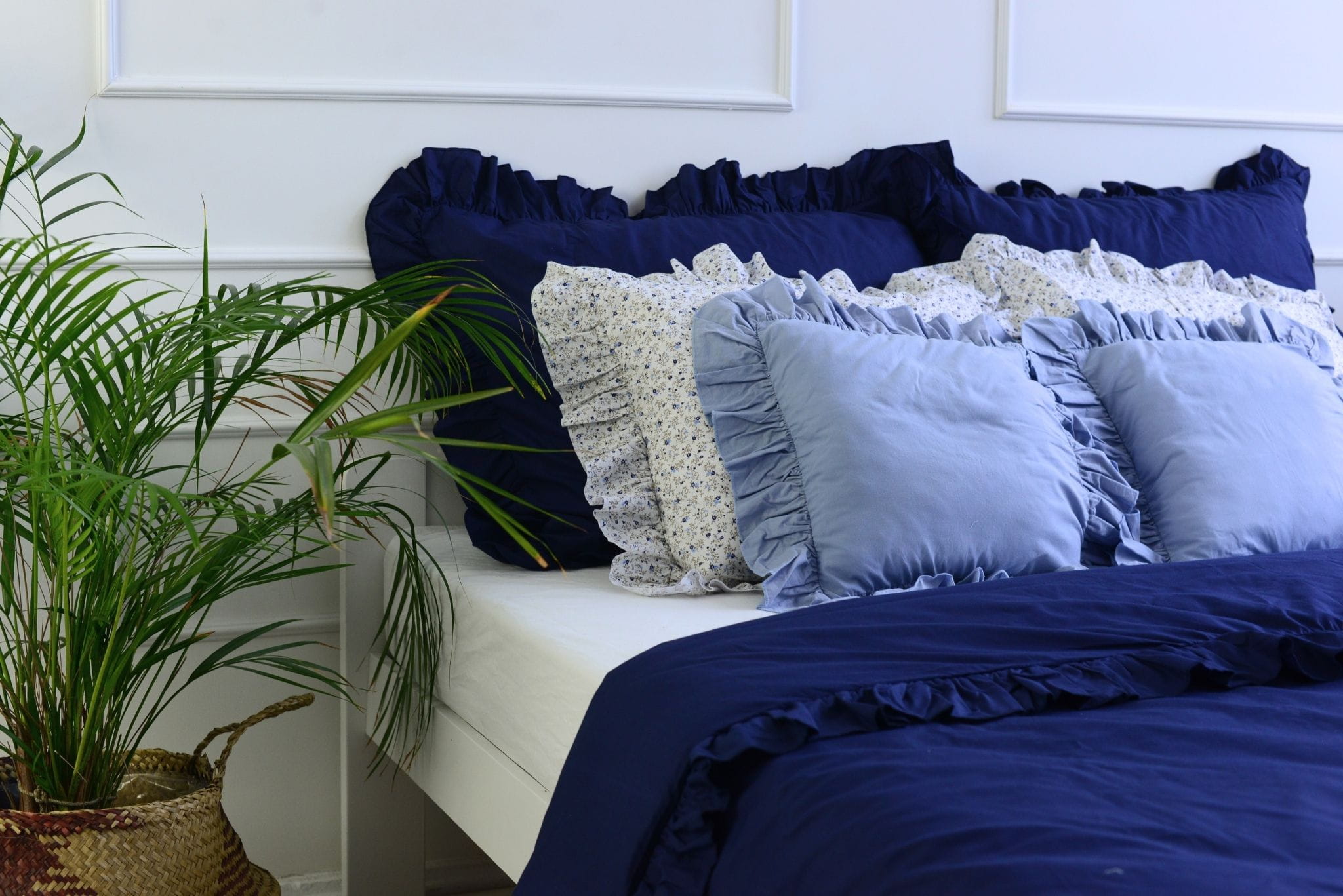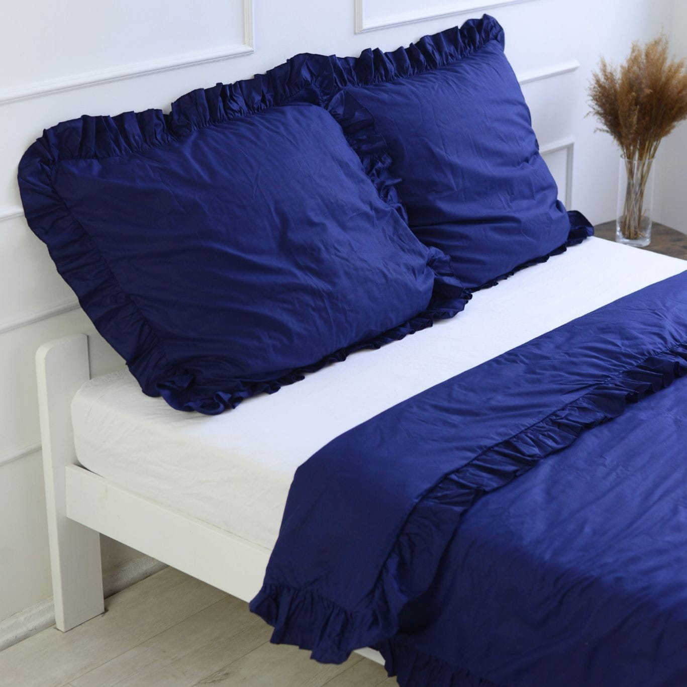 Pościel bawełniana z falbanką - granatowa