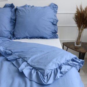 Pościel bawełniana z falbanką niebieska (jeans) - rozmiar 200x200