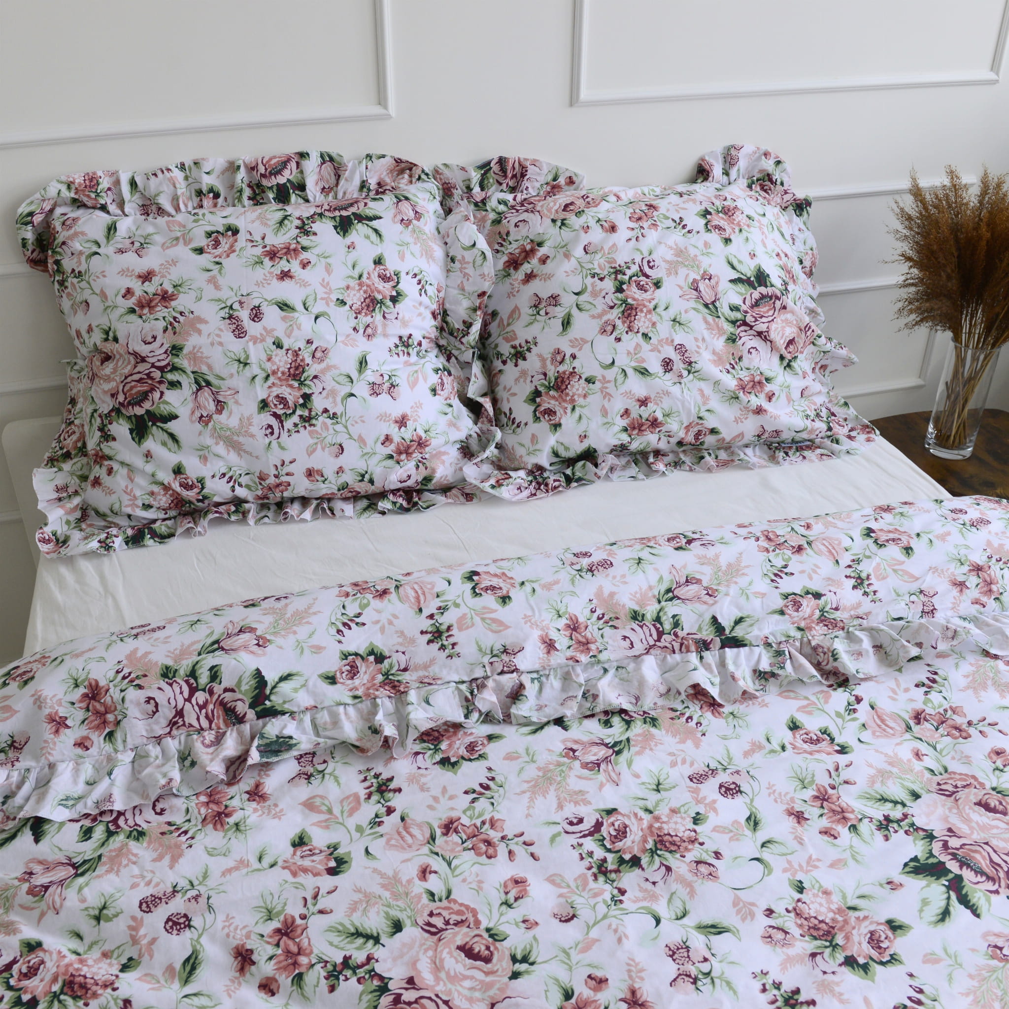 Pościel bawełniana z falbanką retro kwiaty - rozmiar 200x200