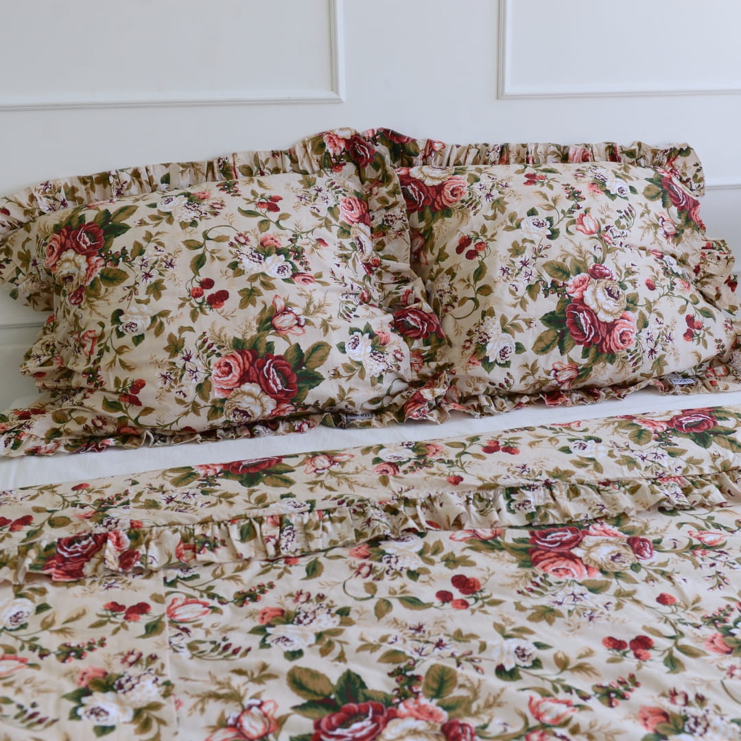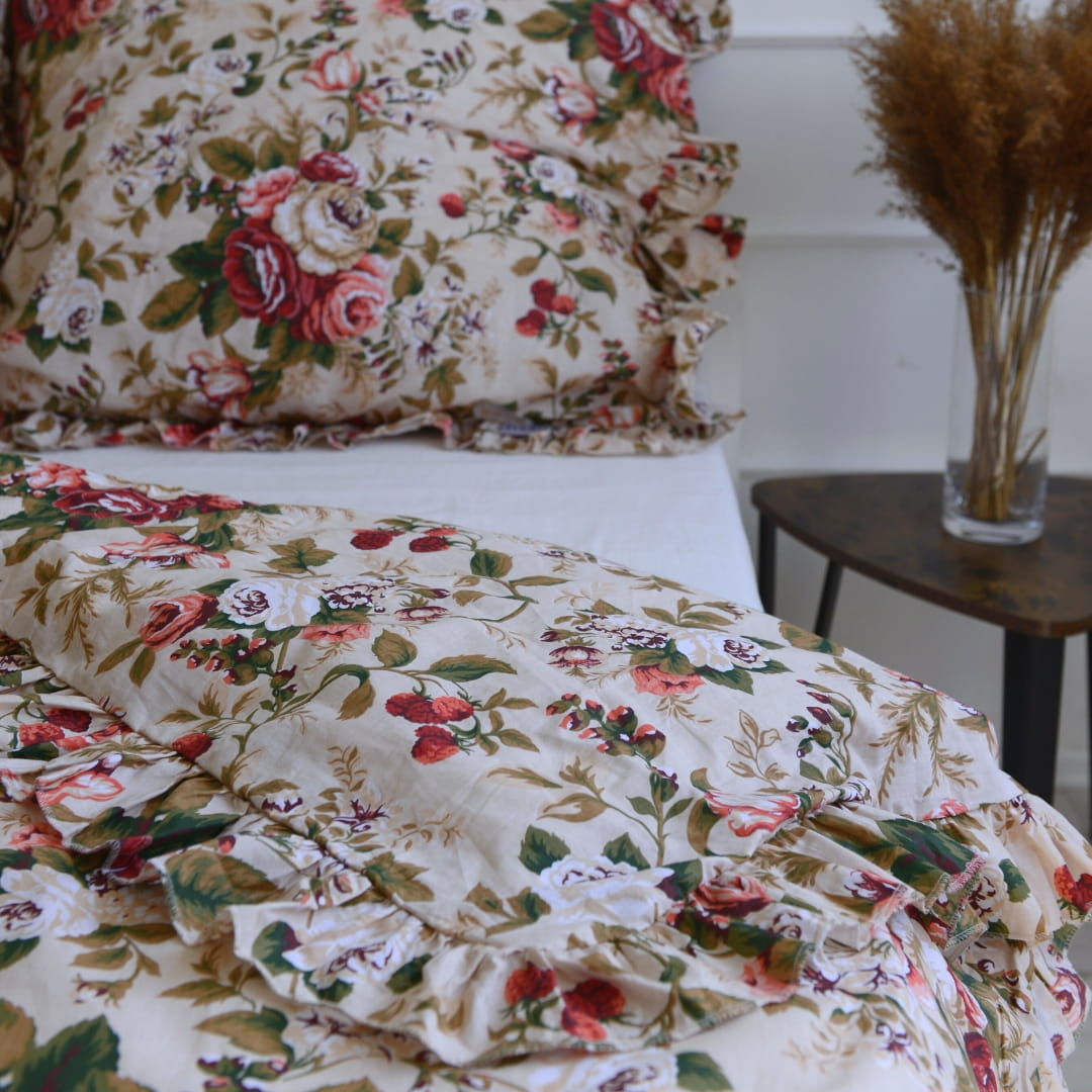 Pościel bawełniana z falbanką róże i maliny- rozmiar 200x200