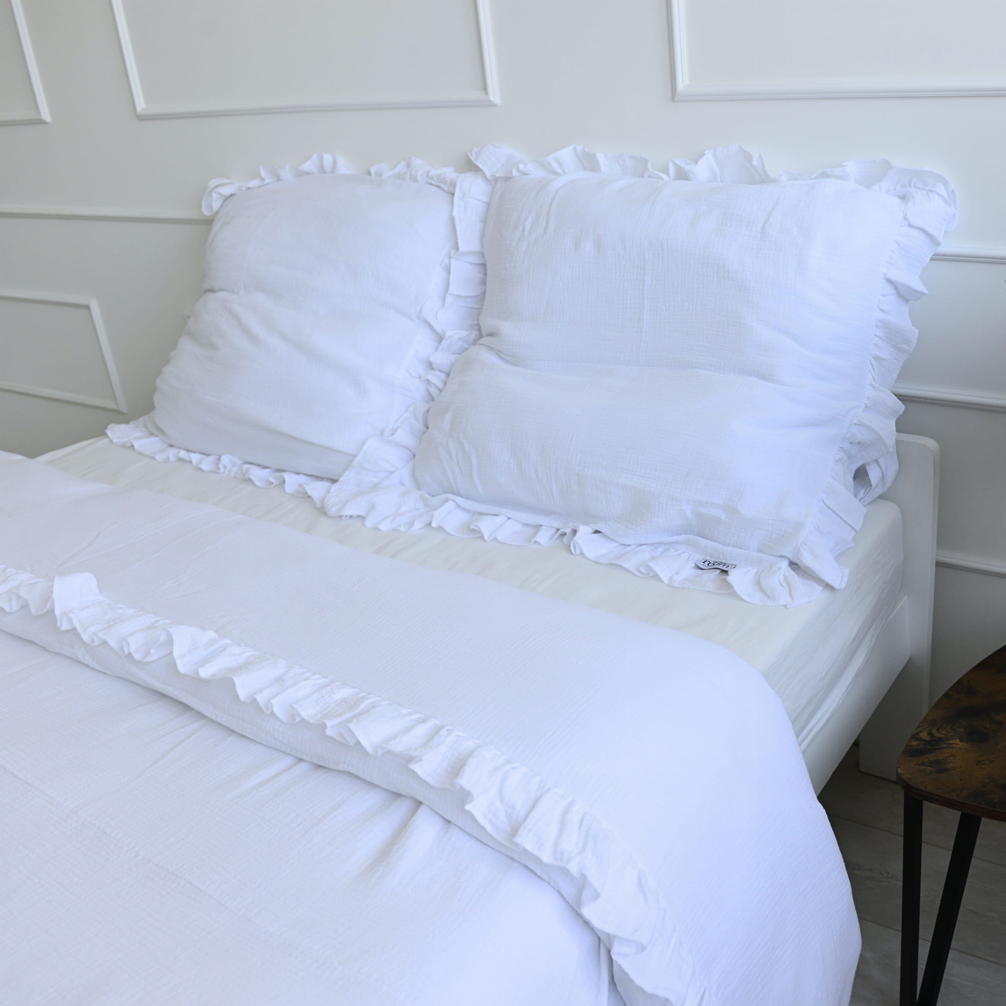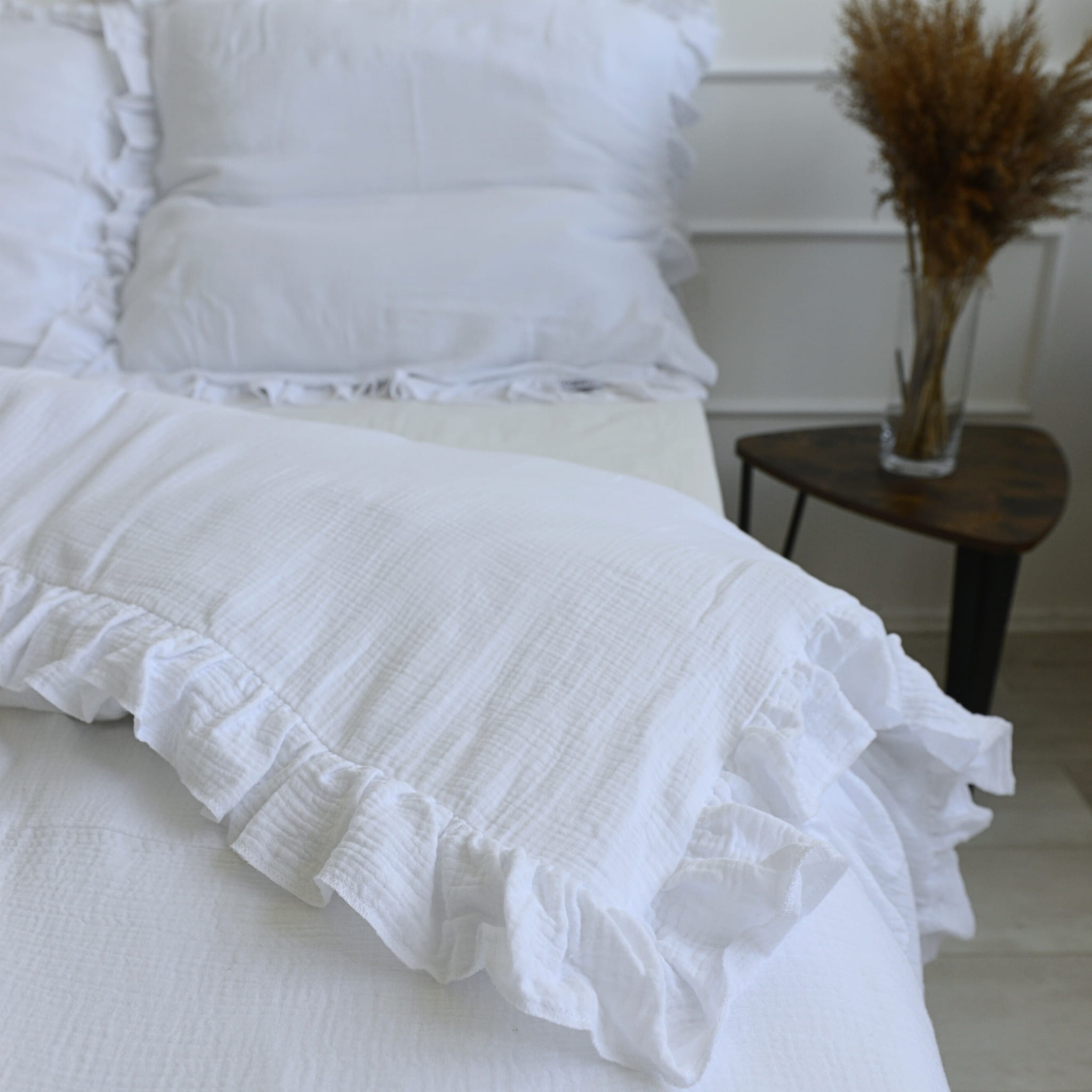 Pościel muślinowa z falbanką biała - rozmiar 160x200