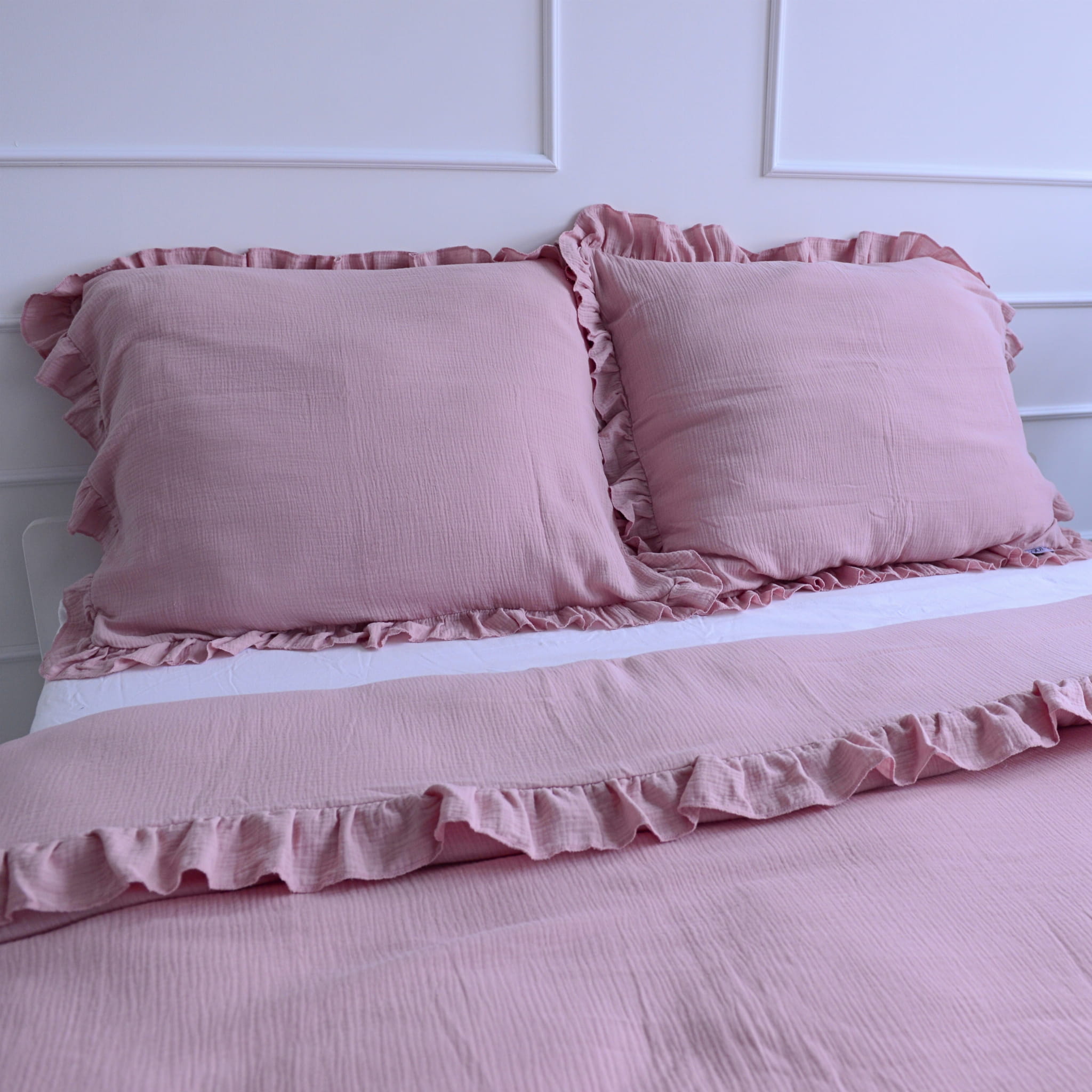 Pościel muślinowa z falbanką boho róż - rozmiar 160x200