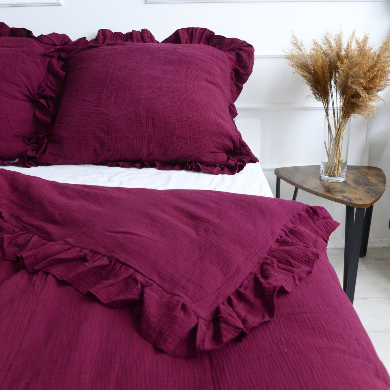 Pościel muślinowa z falbanką bordowa - rozmiar 160x200